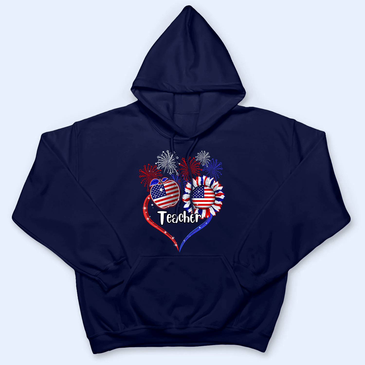 Patriotic Teacher, Fourth 4th Of July, Independence Day - Personalized Custom T Shirt - Birthday, Loving, Funny Gift for Teacher, Kindergarten, Preschool, Pre K, Paraprofessional ‐ HOODIE / Navy / M