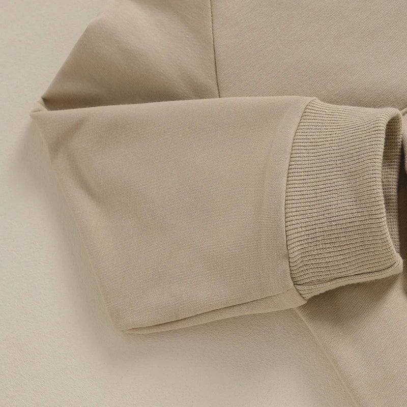 Toddler Baby Boy Girl 2Pcs Set Crewneck Solid Color Long Sleeve Top with Pocket Jogger Pants Outfit ‐ Khaki / United States / 6M
