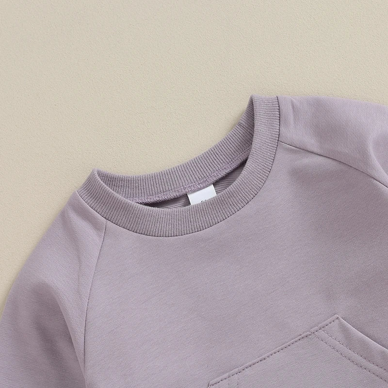 Toddler Baby Boy Girl 2Pcs Set Crewneck Solid Color Long Sleeve Top with Pocket Jogger Pants Outfit