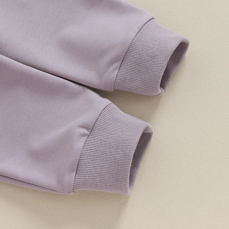 Toddler Baby Boy Girl 2Pcs Set Crewneck Solid Color Long Sleeve Top with Pocket Jogger Pants Outfit ‐ PURPLE / United States / 24M