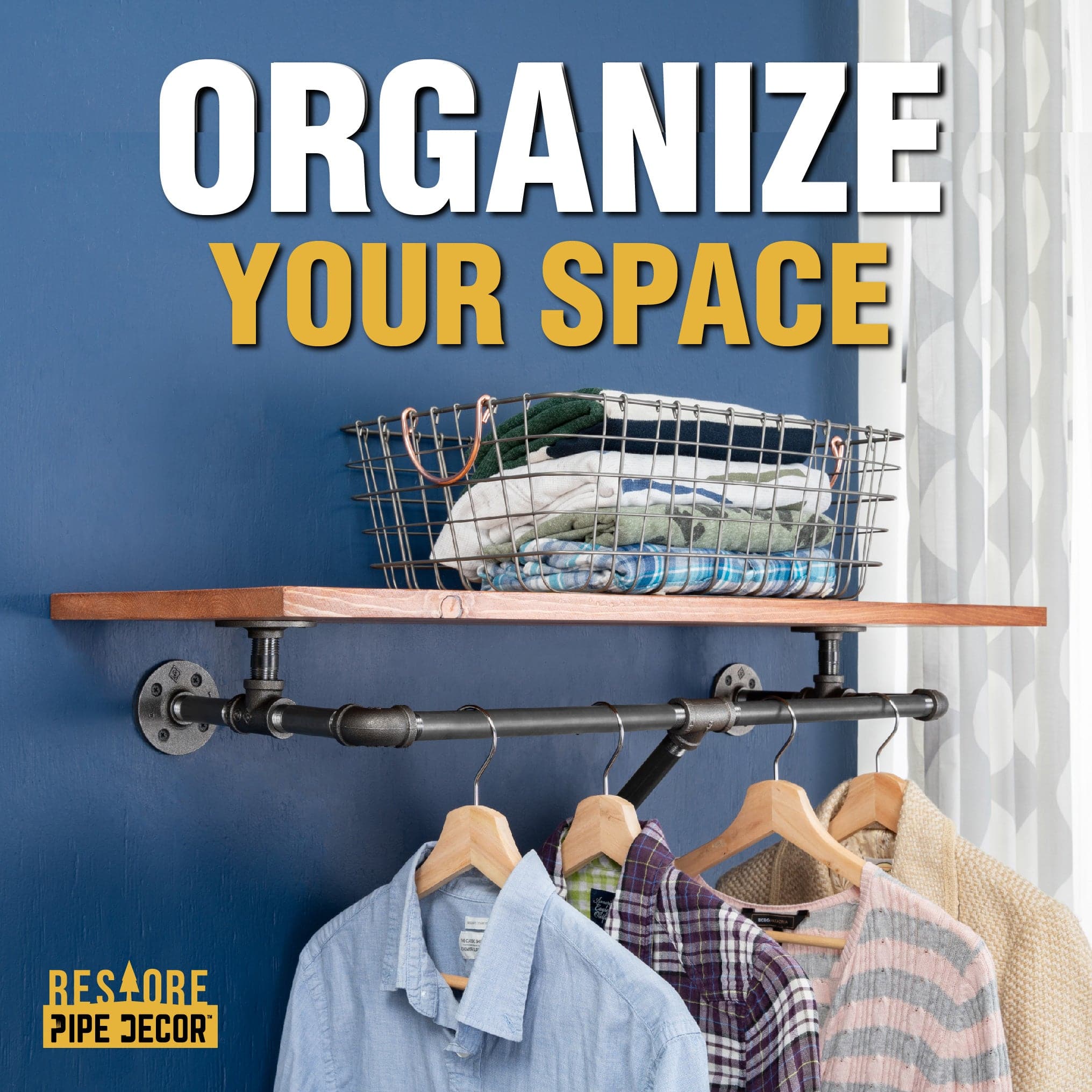 This wardrobe shelf kit adds a unique modern look to any room. Use it as an open wardrobe or clothes rack in your bedroom, towel rack and shelf for your bathroom, coat rack for the mudroom, or a laundry room shelf. The stylish design fits perfectly in any room or commercial space. We have taken extra care in assembling this set and want you to know that you are getting a quality product made with real industrial pipes and genuine North American lumber. Our wood has been collected after forest fires or acquired through preventative deforestation to reduce the severity of future fires. We employ low-impact logging methods that help protect and preserve the land on which each piece is gathered. Pipes and fittings are coated in a light industrial oil to prevent rusting. Easy clean and seal instructions are included.