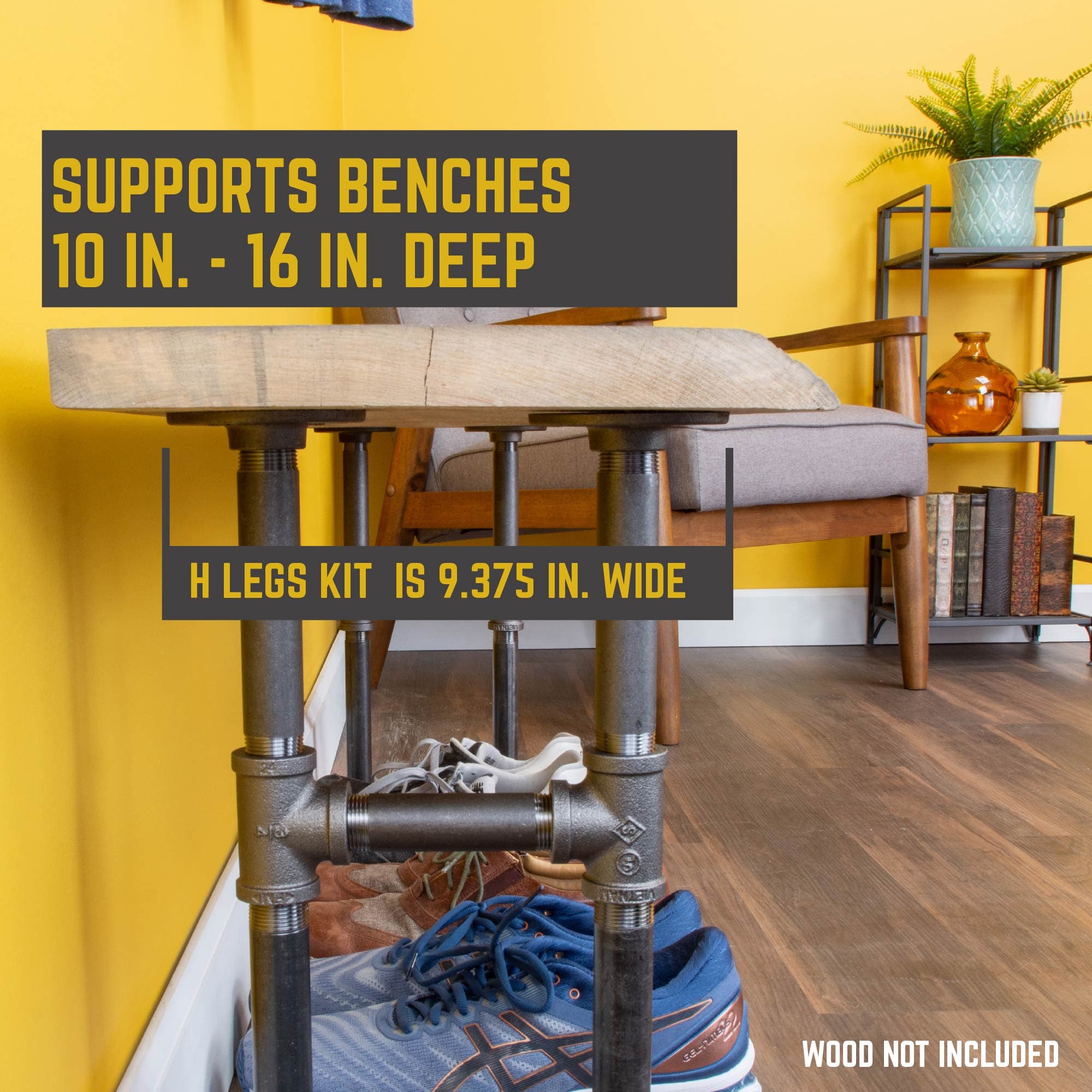 Complete your entryway or mudroom with this easy to assemble kit for bench legs. Create a spot to put on shoes or store your backpacks. Combine with one of our hook kits for additional organization and transform your entryway in an afternoon. This kit can also be used to make end tables, nightstands, or a coffee table. All our Pipe Decor products work well with modern industrial farmhouse and vintage rustic decor. You will know Pipe Decor parts and accessories when you hold them. Beauty and beast. Strength and style. This is real industrial pipe for your creative design needs. Accept no substitutes. All our pipe and fittings come coated in a light industrial grease to prevent rusting. Clean and seal each piece, before assembly, to ensure that they stay rust-free. After cleaning, seal the pipe with polyurethane spray to protect it from rust and scratches.