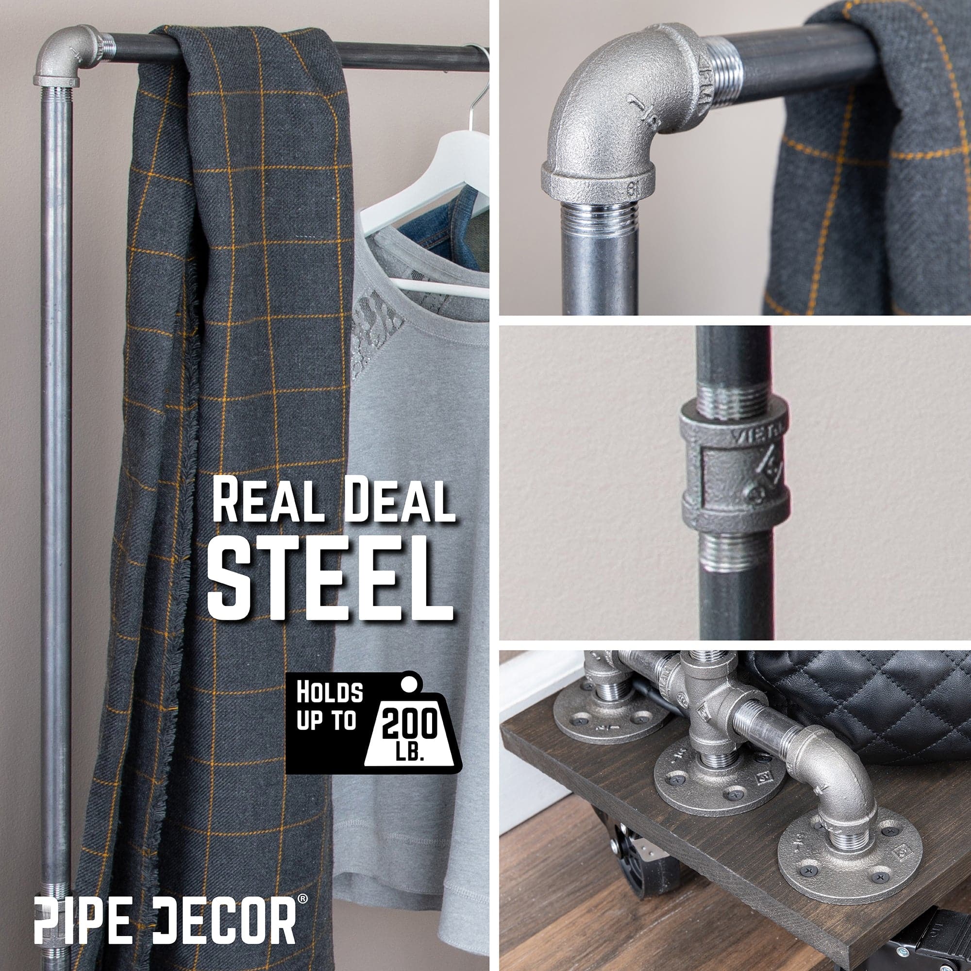 - All fittings are made with durable industrial-grade malleable iron; pipes are 100% authentic steel