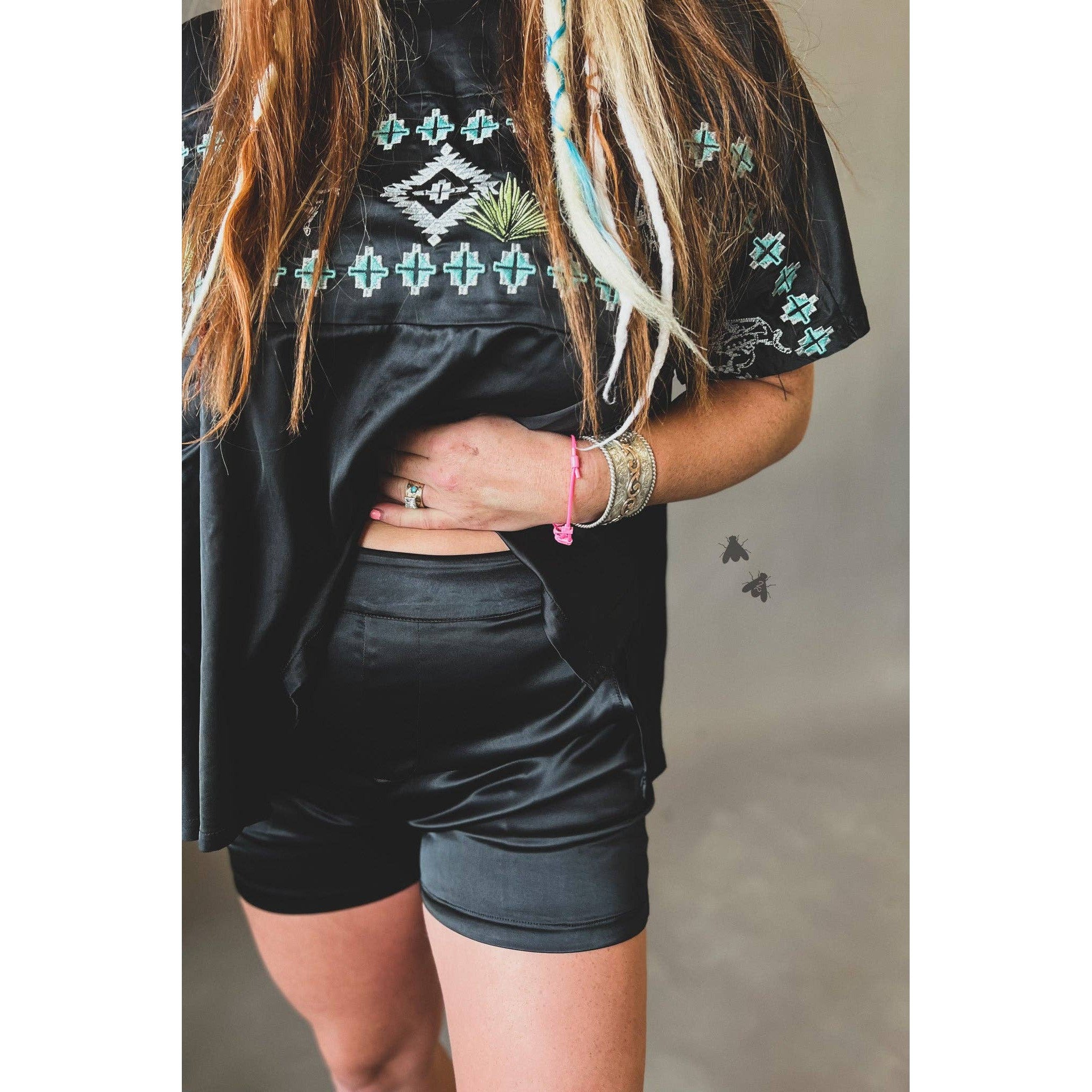 Embroidered Western Motif Poncho Style Satin Look Top "High End Bucks" ‐ S/M