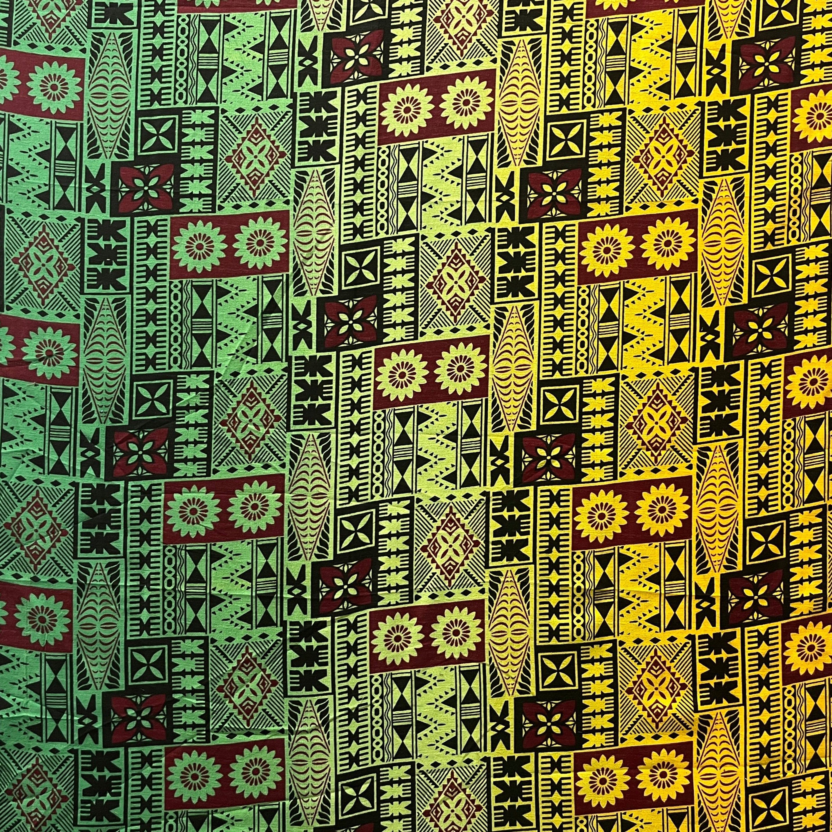 Expertly crafted from 100% cotton, this Fijian Tapa Barkcloth Fabric is perfect for creating unique and stylish clothing and home decor pieces. With its multicolored, ombre-like design, this fabric is sure to add a touch of island charm to any project. Designed to inspire creativity and elevate style.