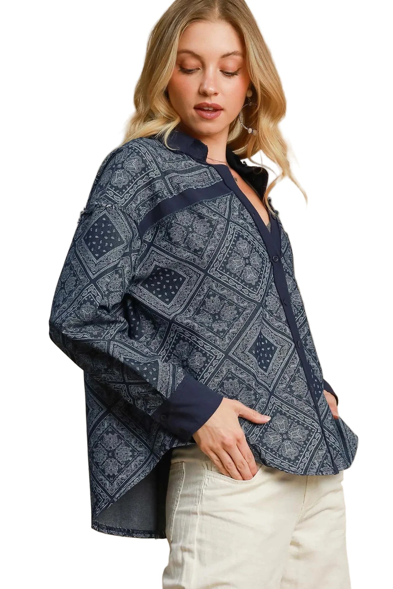Wrap yourself in the embrace of our Paisley Print Denim Shirt Jacket, where timeless elegance meets modern flair. The quilted diamond pattern dances across the fabric, whispering secrets of romance and adventure. Each stitch tells a story, inviting you to explore the world in style.
