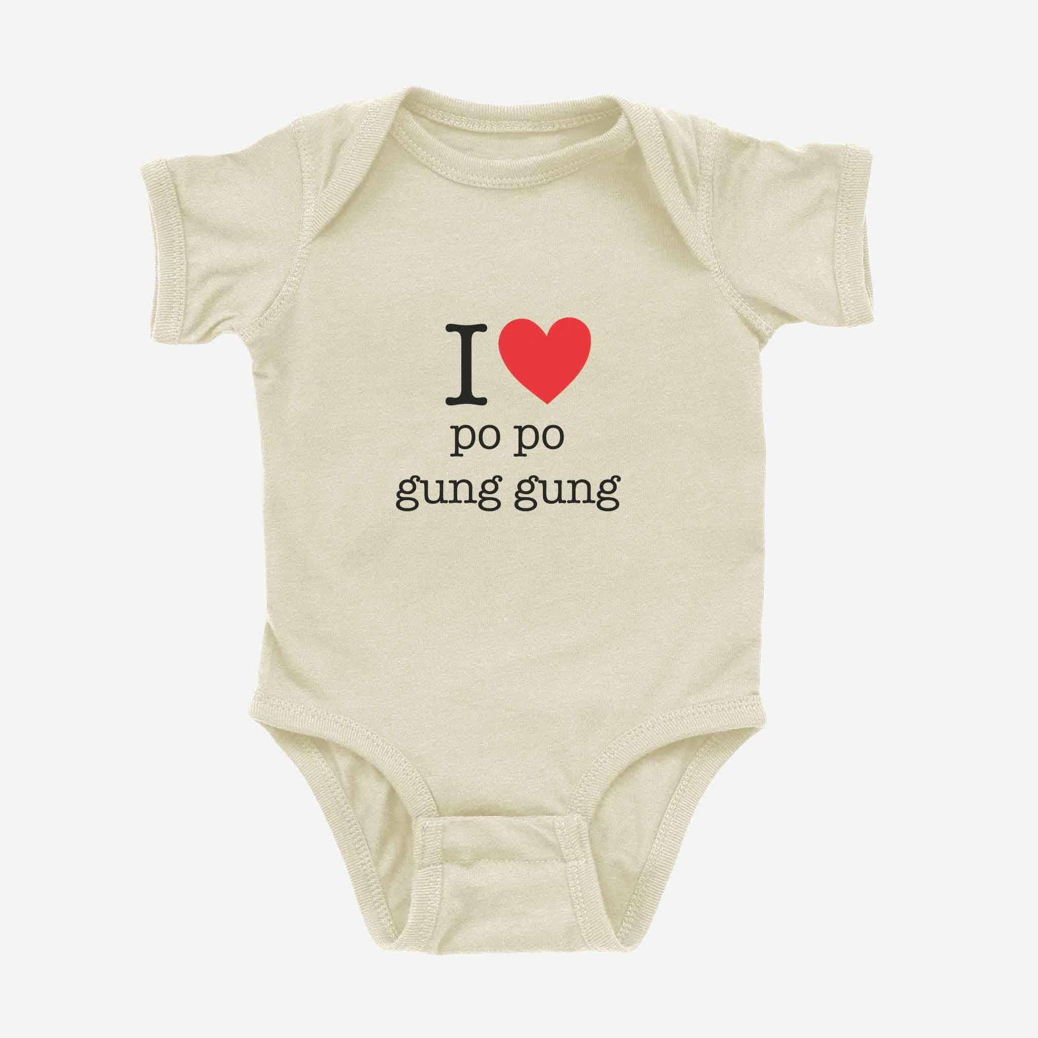 For babies that call grandma and grandpa Po Po and Gung Gung this onesie honors that special bond.