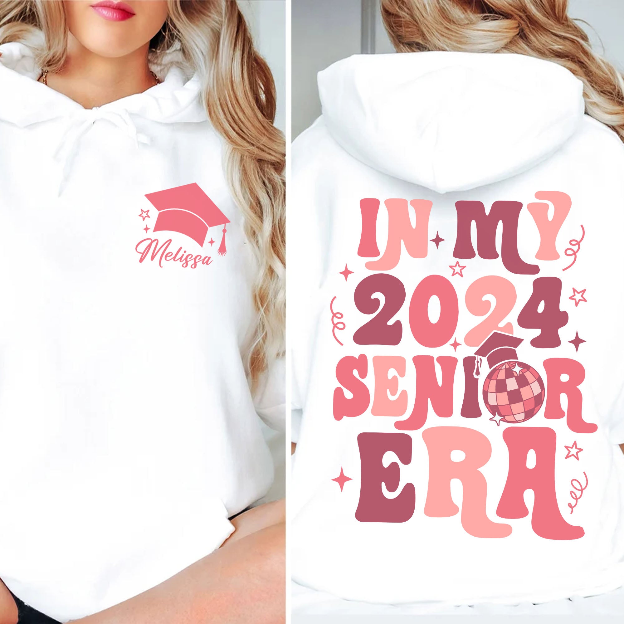 In My 2024 Senior Era - Personalized Custom Name Graduation Front & Back Shirt C880 ‐ Pullover Hoodie / White Colour / XL