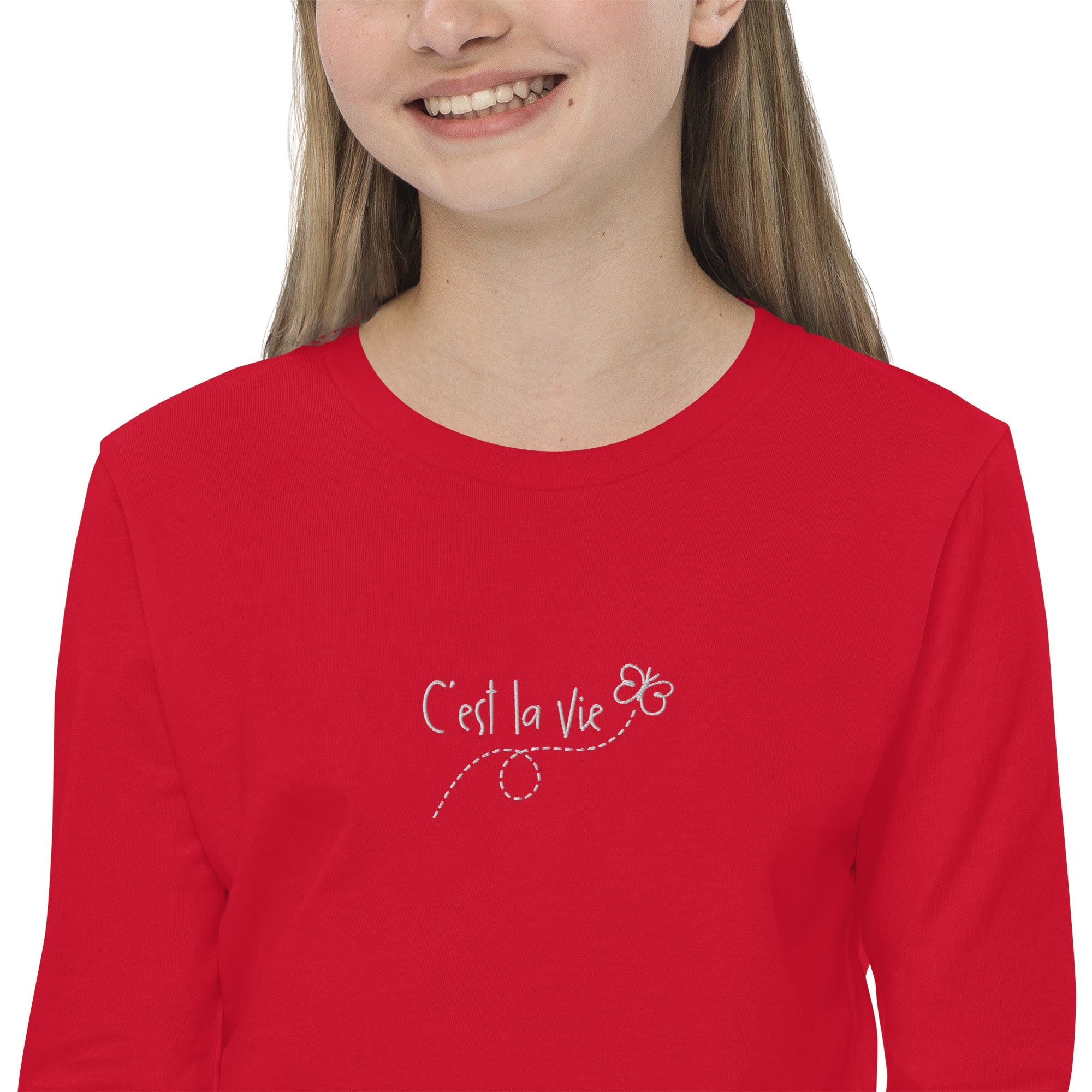 Give your child the gift of comfort and style with our "C'est la Vie" butterfly youth long sleeve shirt today!