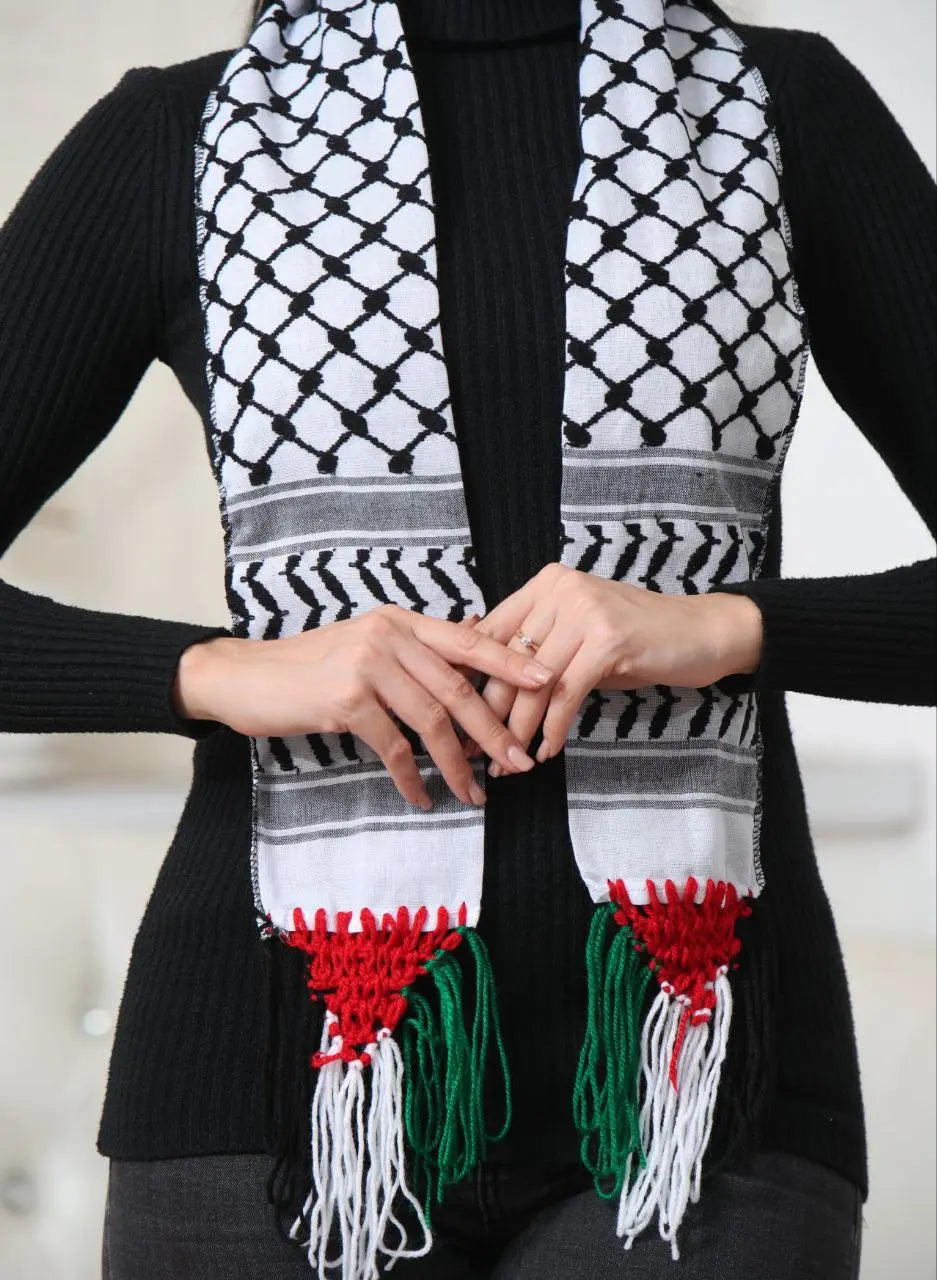 Kuffiyeh Scarf with Palestine Color Strings – Authentic Design