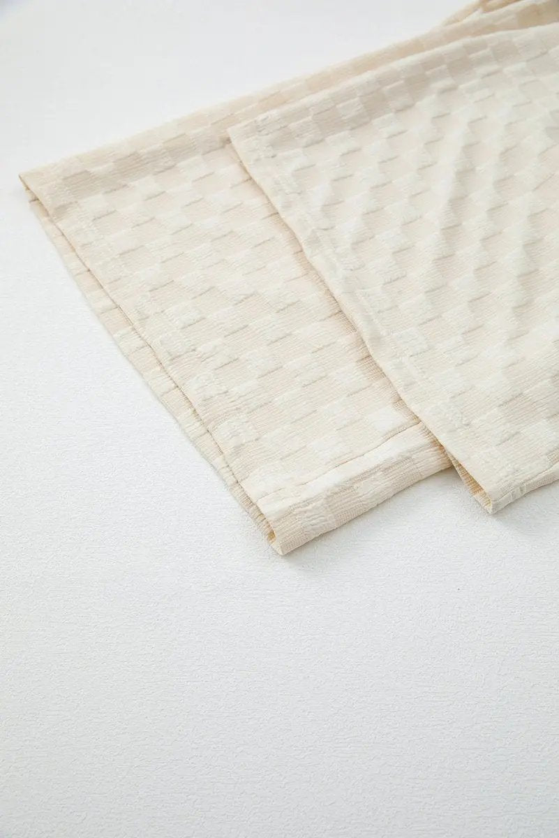 Love Salve Beige Checkered Pocketed High Waist Wide Leg ‐ Beige / XL / 95%Polyester+5%Elastane