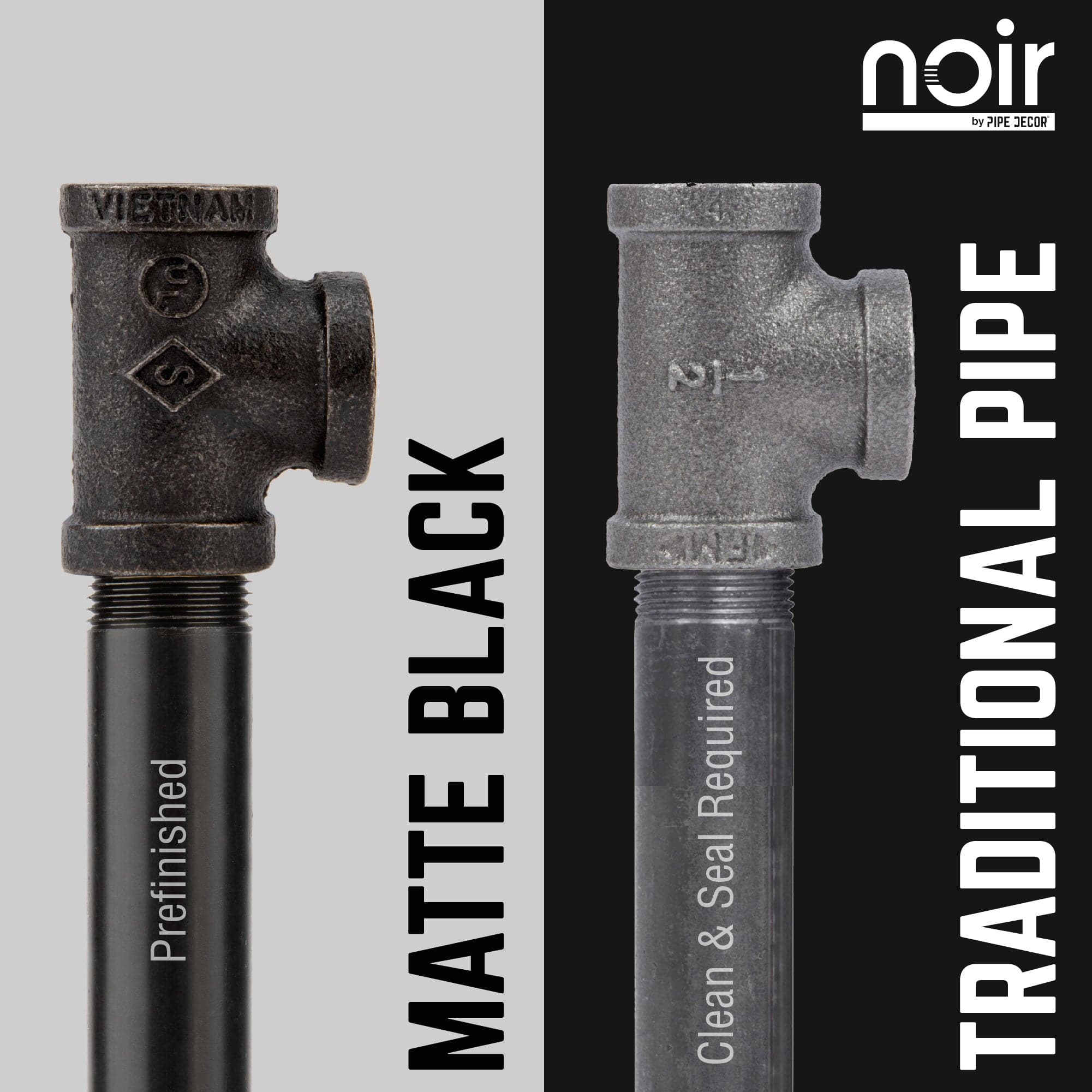 While our standard black pipes and fittings are coated in a protective oil, our Noir line comes completely ready to use—no need to clean and seal or paint. It’s laid-back and low maintenance for the DIYer on the go.