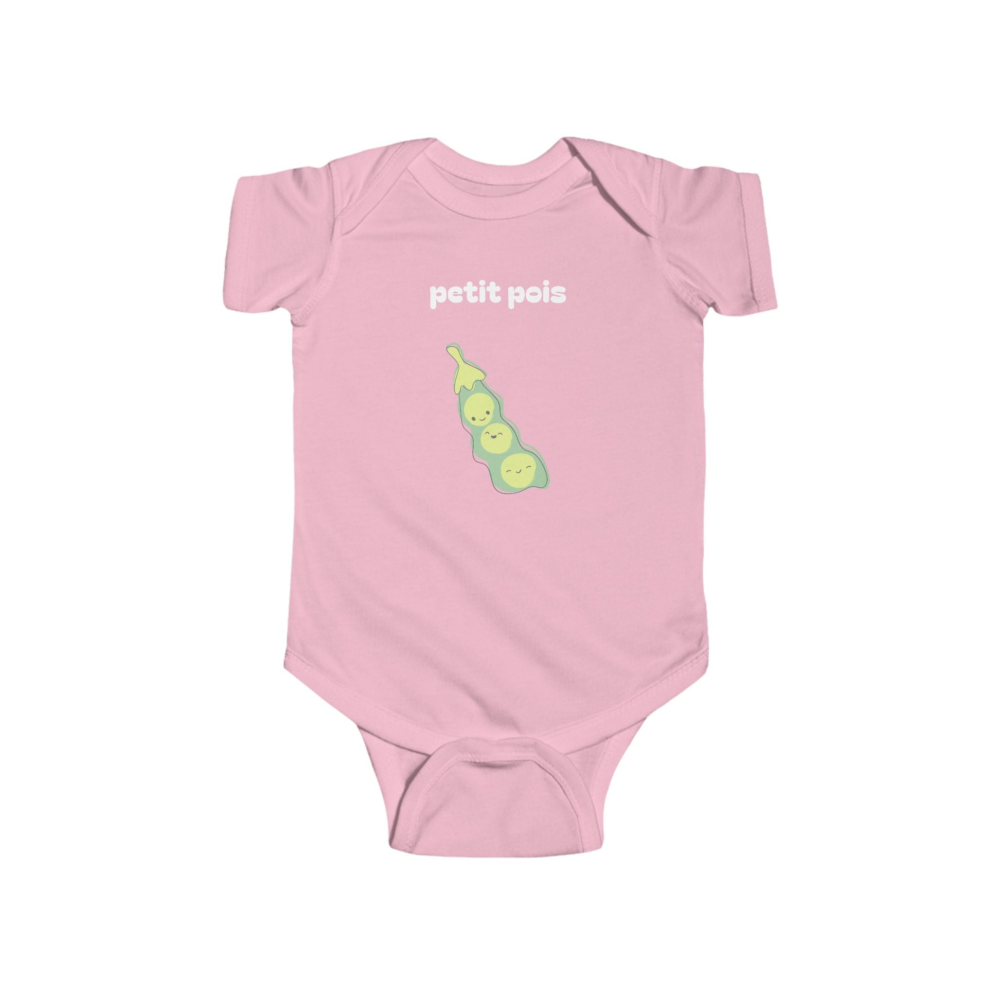 Show the newborn in your life that they are the sweetest little pea! The unique petit pois (little pea) design in French adds a unique twist to your child's (or friend's child's) wardrobe.