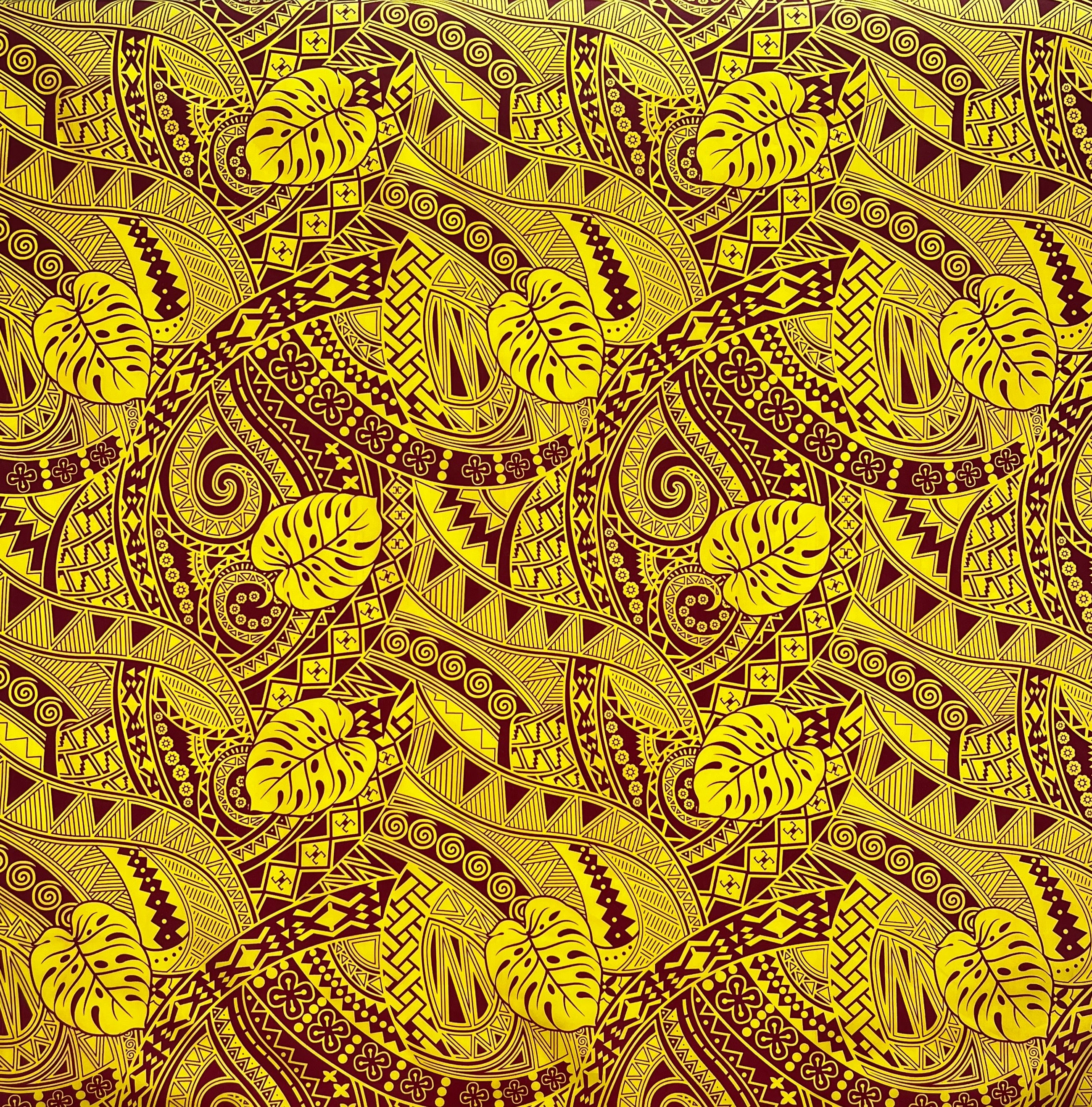 Traditional Polynesian Tapa Monstera leaves design Fabric | Polyester ‐ Yellow/Brown