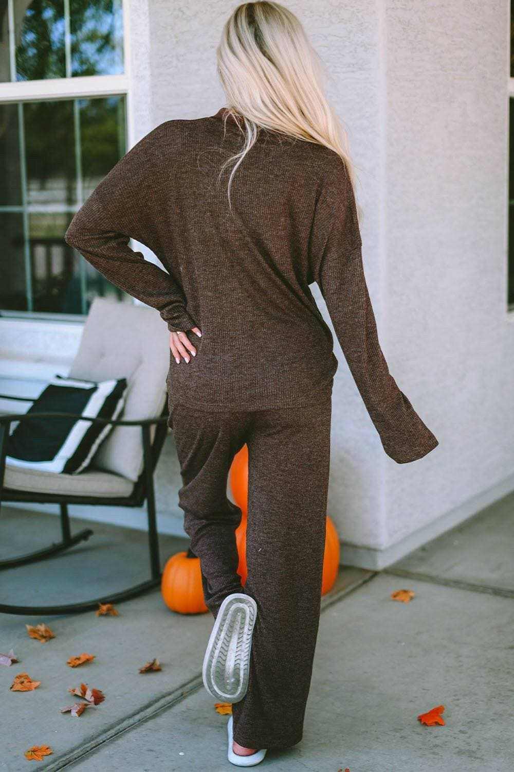 Apparel & Accessories > Clothing > Tops - Chic cozy lounge set ‐ Chestnut / L