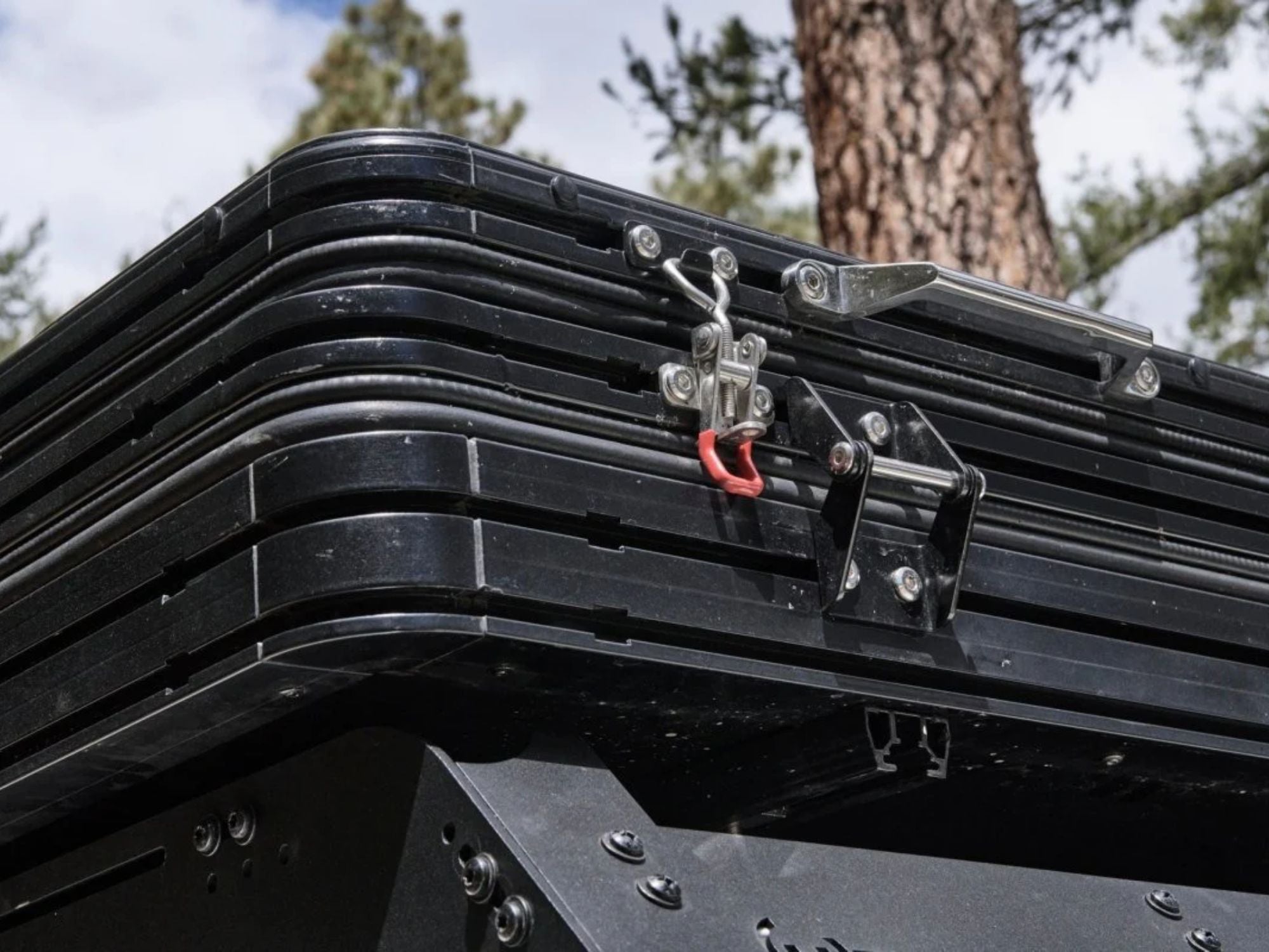 -Under 8" slim profile when packed up and latched (excludes additional roof rack height)