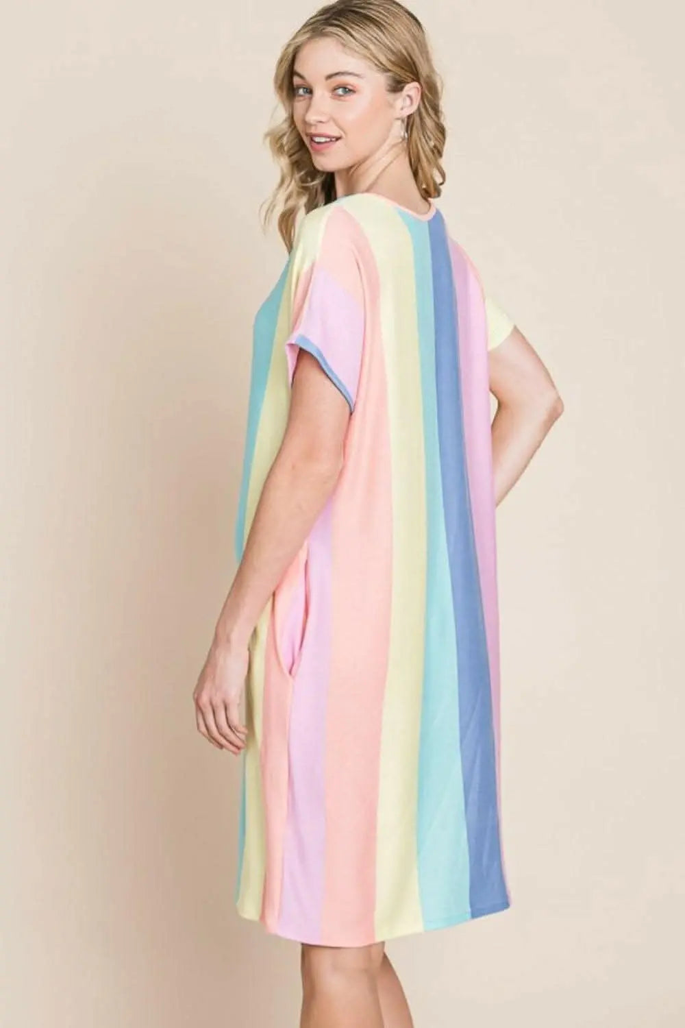 usa - Striped Short Sleeve Dress with Pockets - Classic Elegance