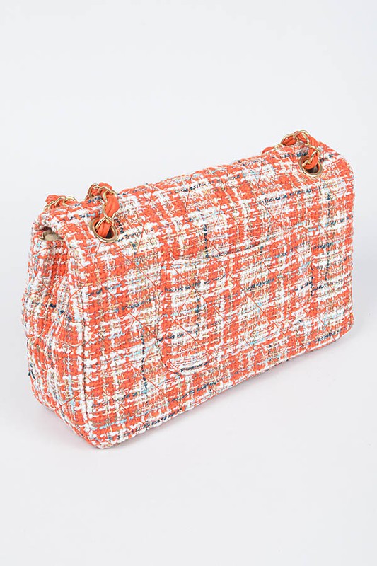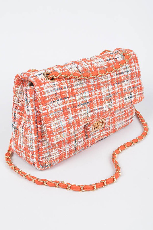 Chic on Repeat Quilted Tweed Convertible Shoulder Bag ‐ Orange / O/S