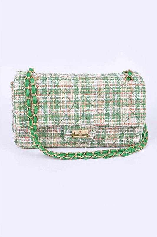 Chic on Repeat Quilted Tweed Convertible Shoulder Bag ‐ Green / O/S