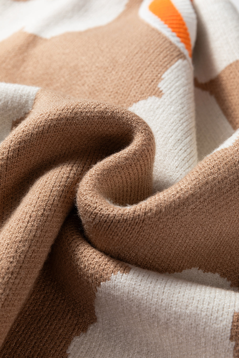 Flower Colorblock Contrast Stripe Baggy Sweater