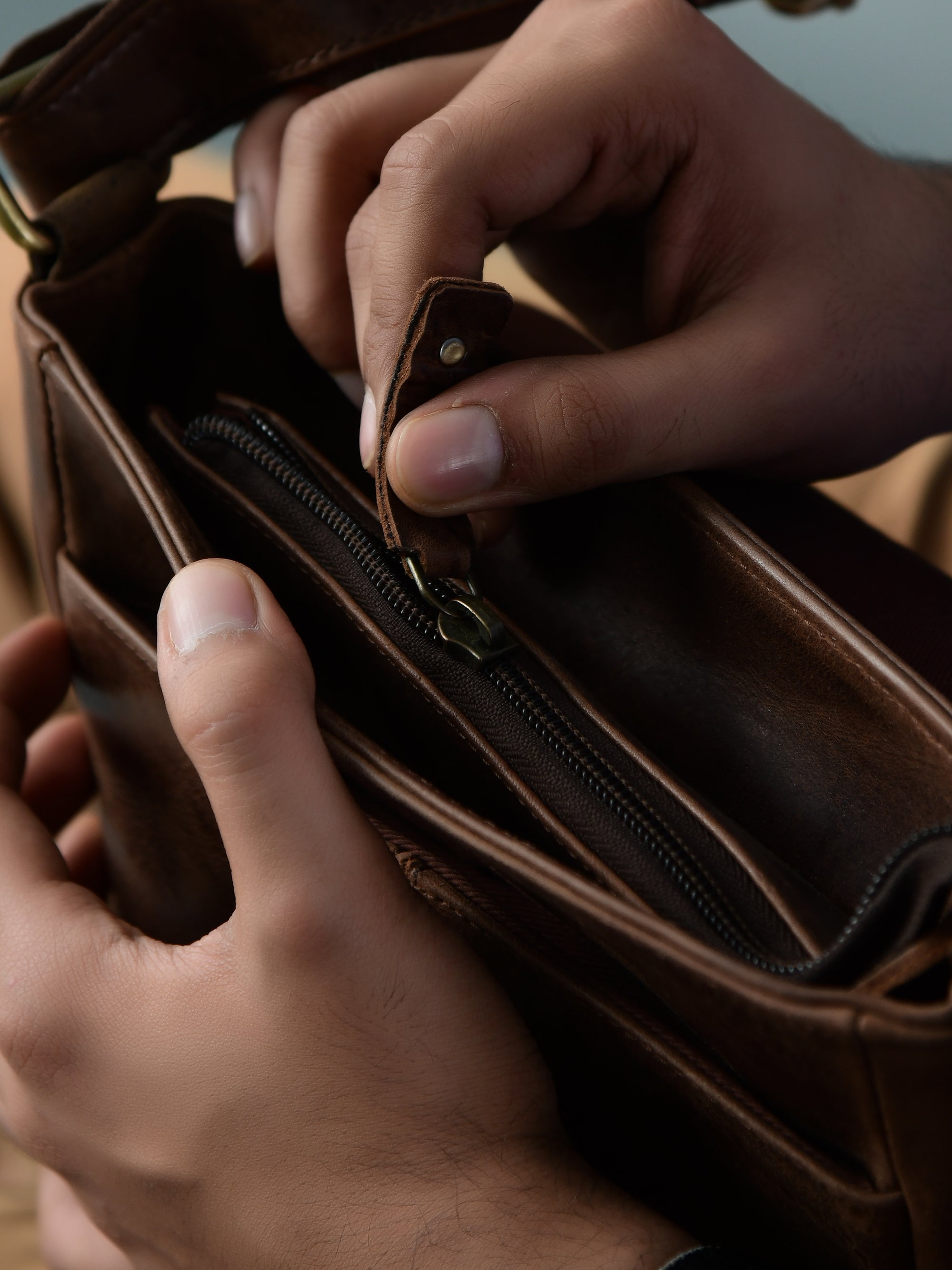 With a central compartment, a small front pocket, and a back pocket with zippers, it offers ample storage. The metal snap button and adjustable strap, allowing for crossbody wear, ensure both security and comfort. Designed for both men and women, this leather crossbody bag combines practicality and fashion seamlessly. Simplify your daily carry with this dependable and unisex leather messenger bag.