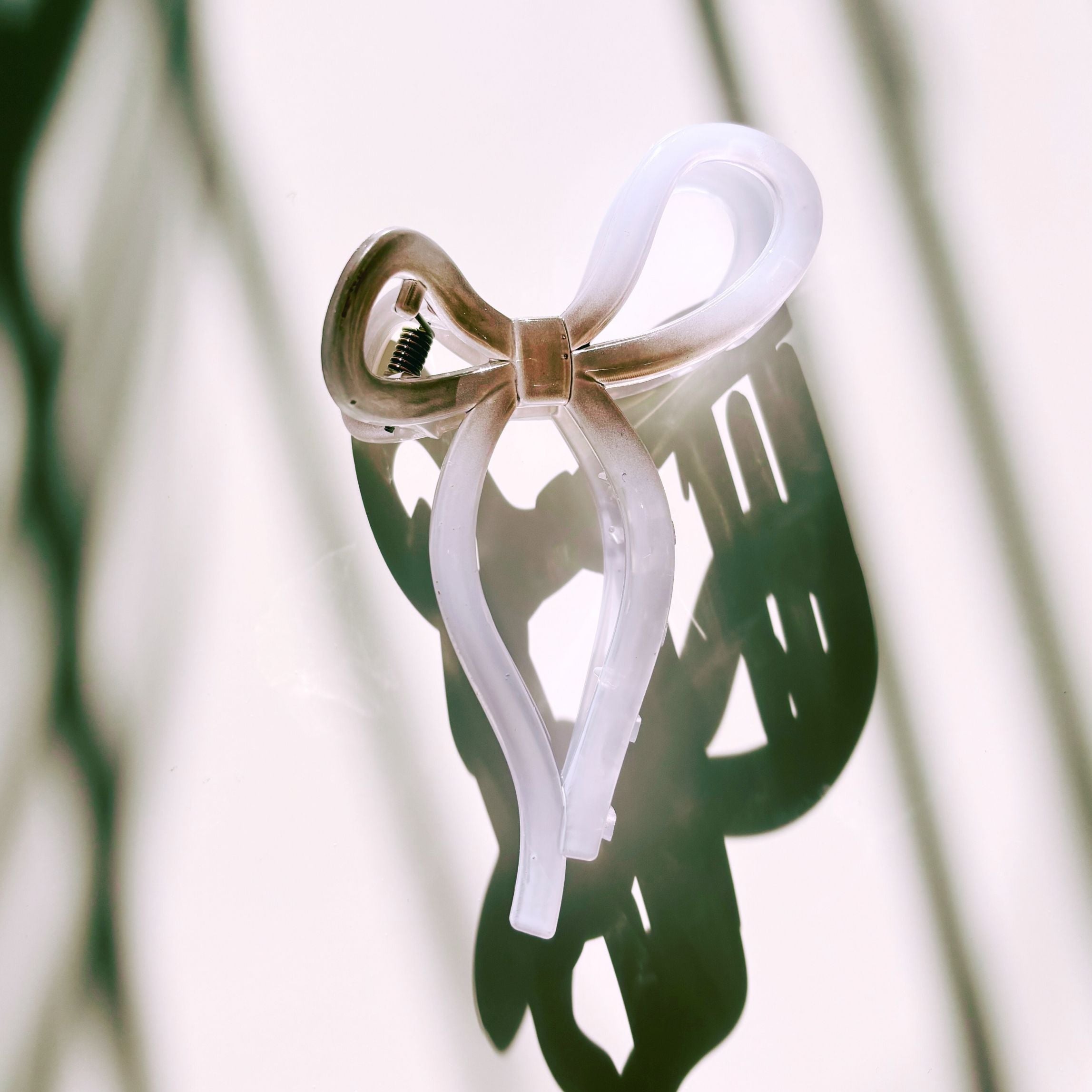 Graceful and dreamy, this bow-shaped claw clip features a stunning violet ombre design, perfect for adding a touch of romance to any look. Lightweight yet secure, it keeps your hair in place with effortless elegance. Comes with a soft velvet travel bag for chic storage on the go!