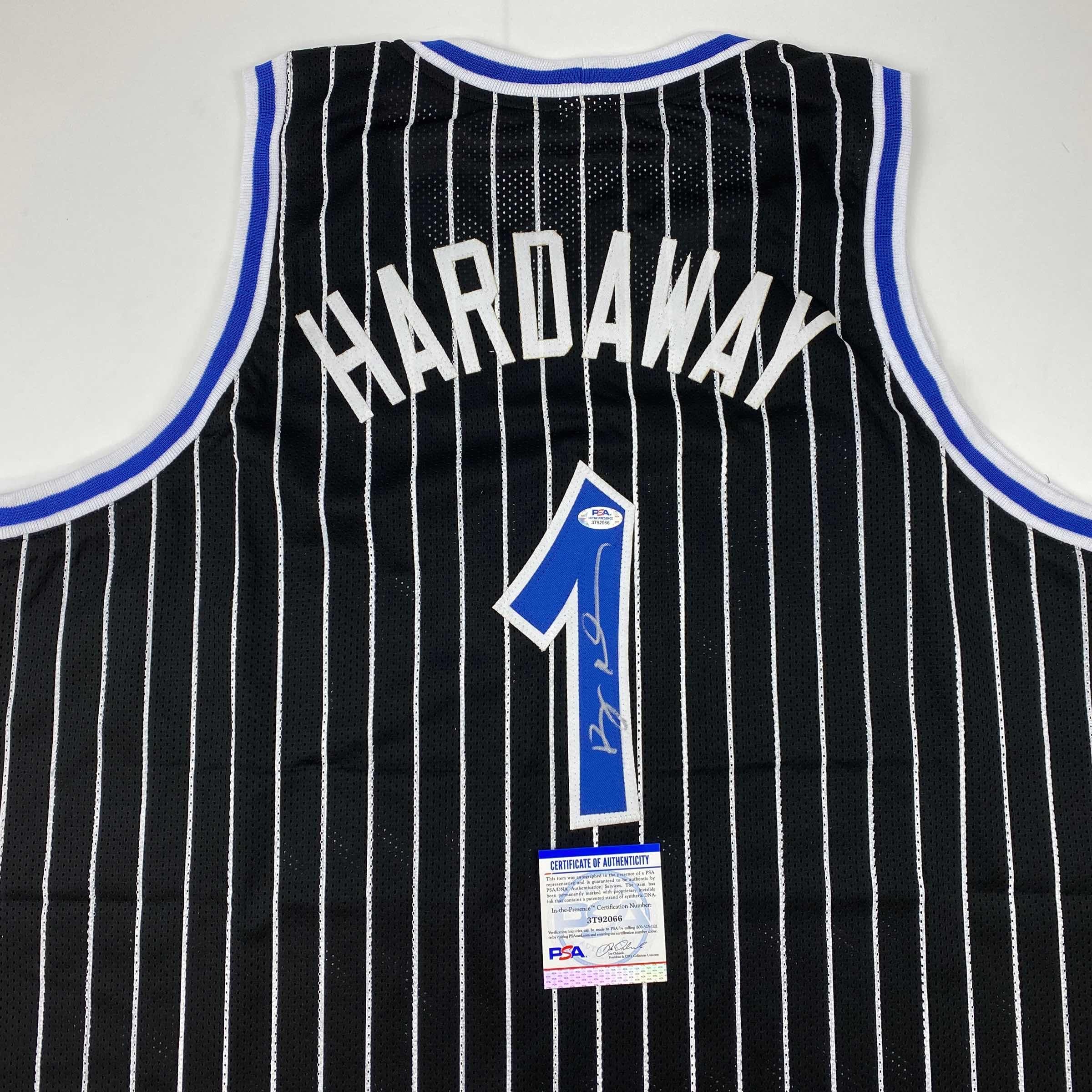 Autographed/Signed Anfernee Penny Hardaway Orlando Black Pinstripe Basketball Jersey PSA/DNA COA