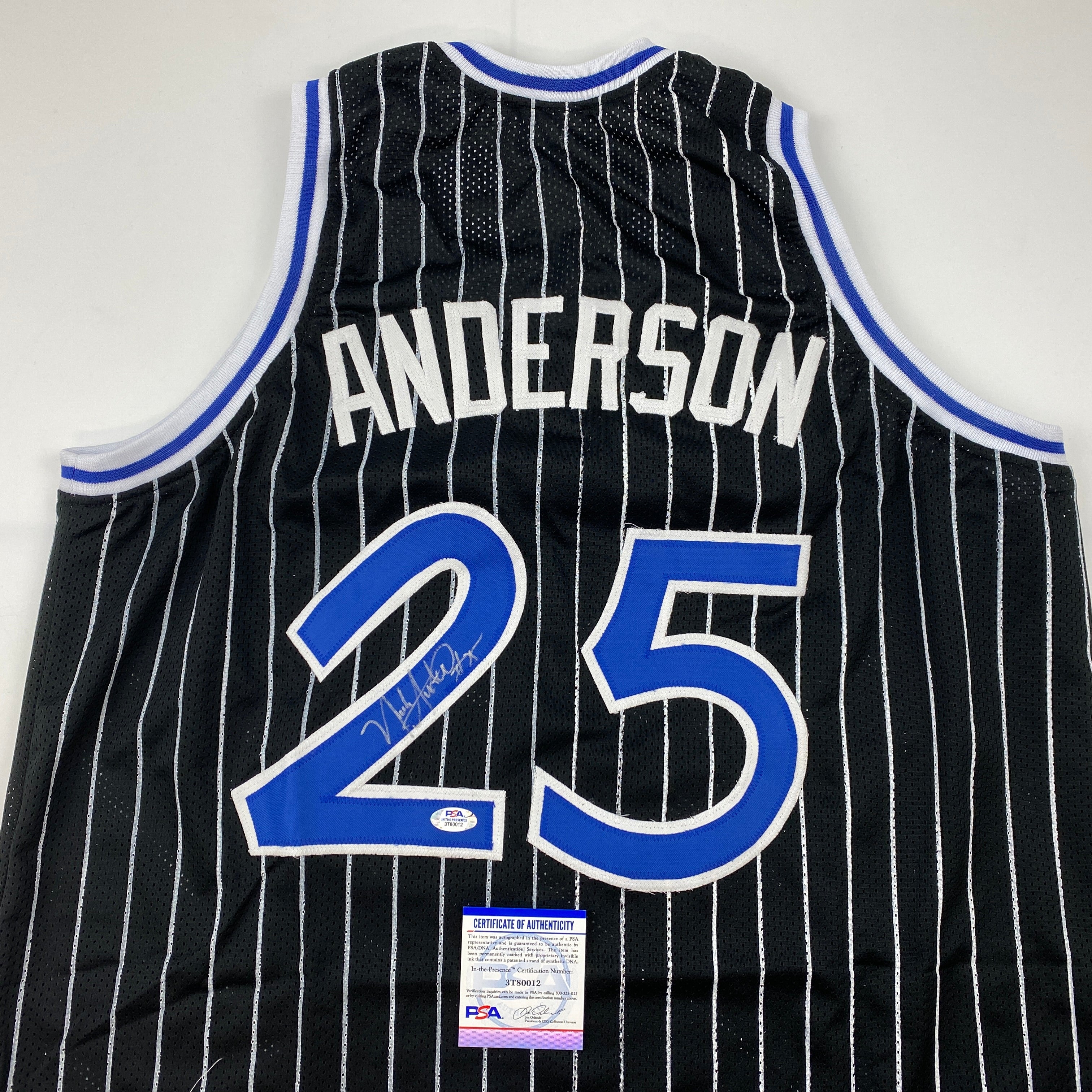 Autographed/Signed Nick Anderson Orlando Black Pinstripe Basketball Jersey PSA/DNA COA