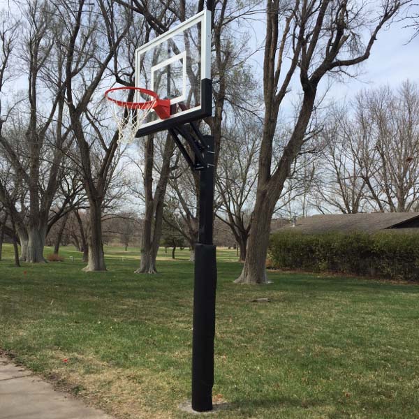 With the Insta-Just height adjustment mechanism, the Champ Goal can be adjusted from 10' to 7'6" in six-inch increments. Simply release the Insta-Just height regulator using a broom handle to make adjustments. A variety of backboards and rims are available to customize the Champ package to fit your needs. Additionally, for added safety, pole padding and backboard padding can be added to any Champ package.