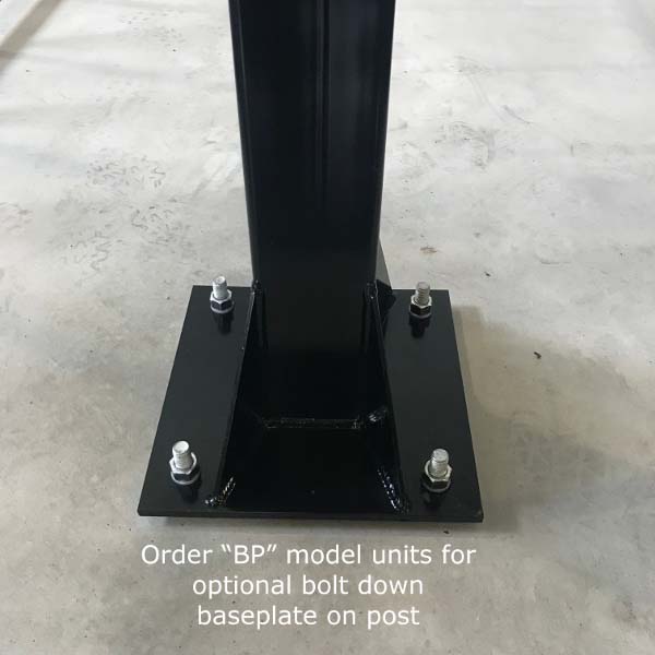 Vertical pole is one-piece 4" square (sectional posts not considered equal) with a minimum 11 gauge wall thickness and allows for burying 36" in concrete. Posts with thinner wall thickness are not considered equal. Posts intended to be buried less than 36" are not considered equal. Pole has a watertight vinyl cap to seal out moisture.