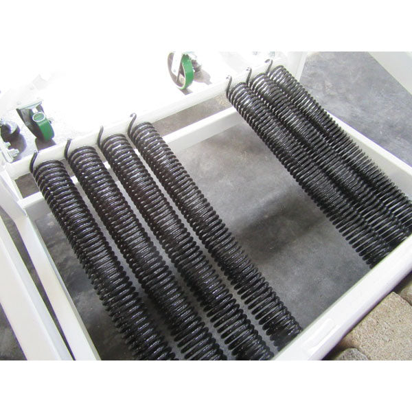 The unit operates via “Spring-Assist”. Seven 3 ½” painted coil springs support the weight of the backboard, rim, extension boom, padding and uprights (NO HYDRAULICS). Coil springs are painted to match the color of the base. Plated springs are not considered equal due to “hydrogen embrittlement” which takes place during the plating process. Rim height is adjustable in six-inch increments from regulation 10’ height down to 6’ via a removable adjustment pin. The Spring-Assist system can be operated easily by one person.