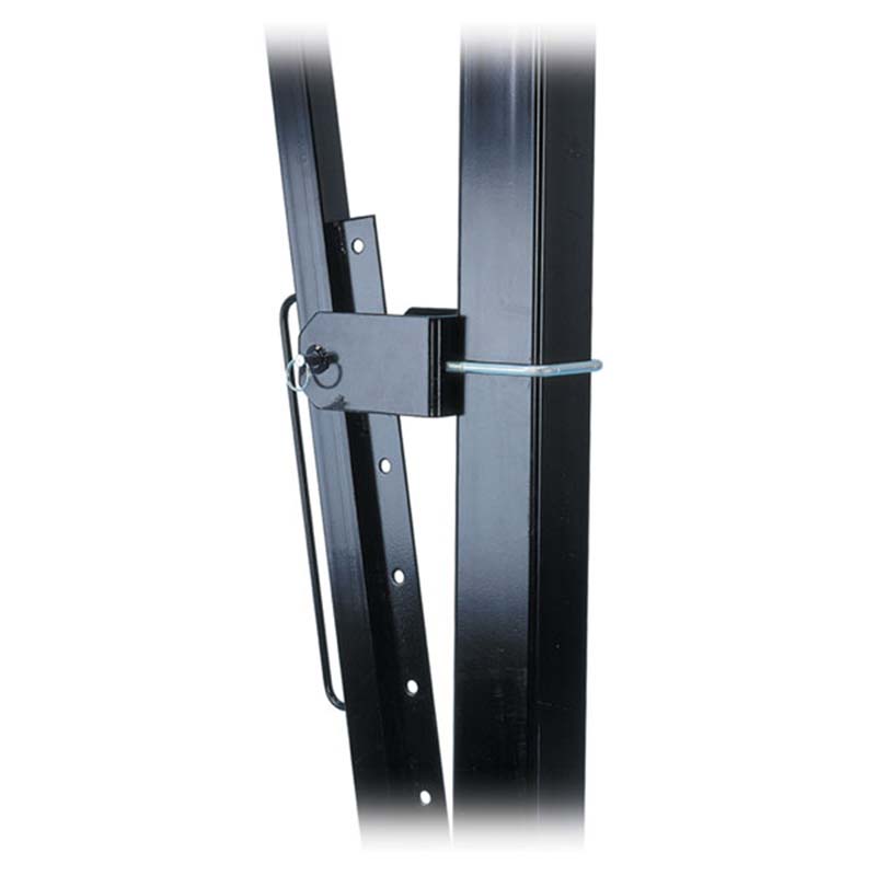 Adjustable extension arms are constructed of 2" x 2" tubing. Extension allows for a minimum 24" from front of post to face of backboard with rim at 10' playing height. Pole structure allows for rim height to be adjusted in six inch increments from 10' down to 7' by means of a removable pin which secures the adjustment handle into a pin bracket. Two springs mounted in the extension assembly counteracts the weight of the backboard and rim making one-person adjustments easy. Pole design permits the rim to be mounted directly to the extension arm through the backboard to reduce stress on the backboard
