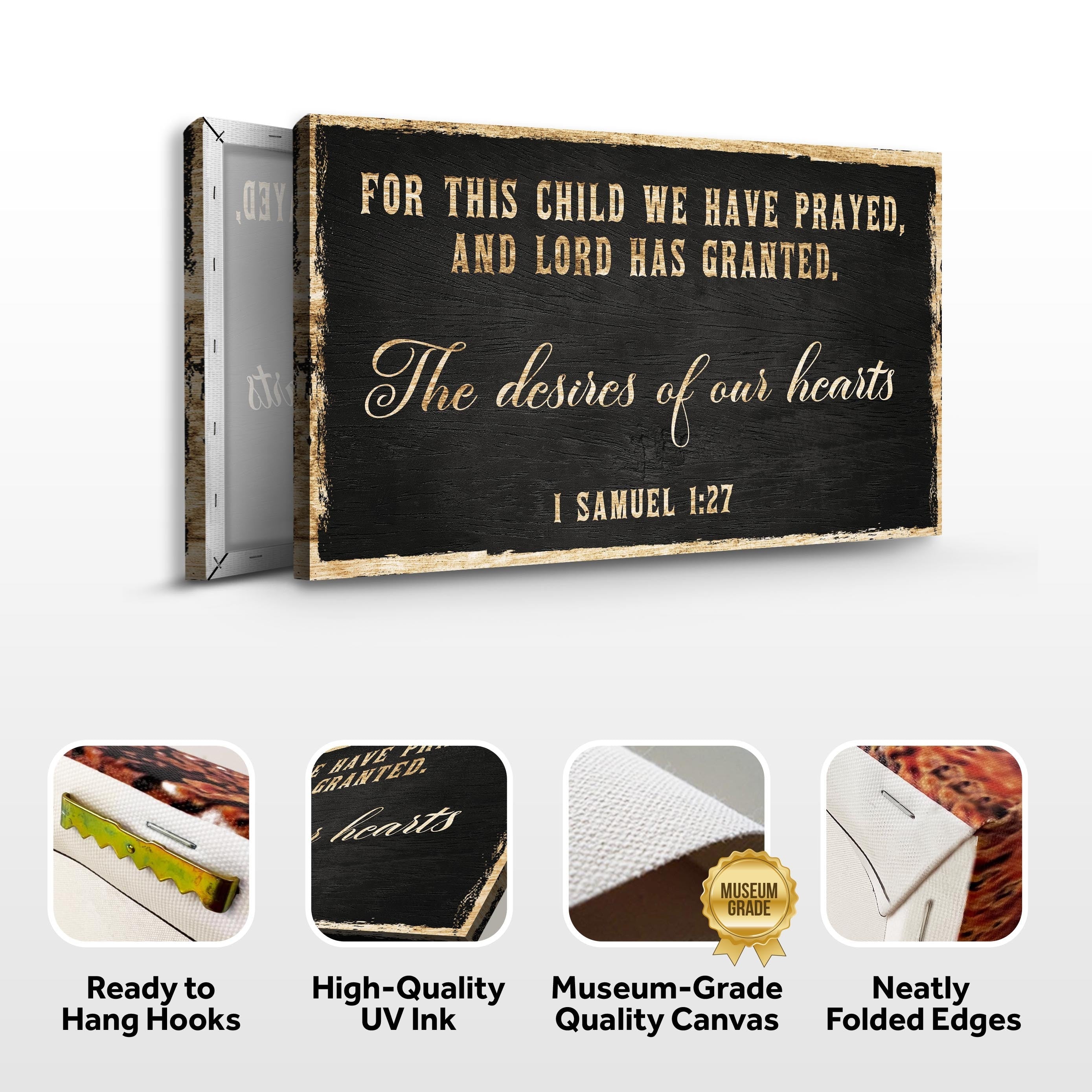 1 Samuel 1:27 - For This Child We Have Prayed Sign IV ‐ 24x16 inch Large Premium Gallery Wrapped