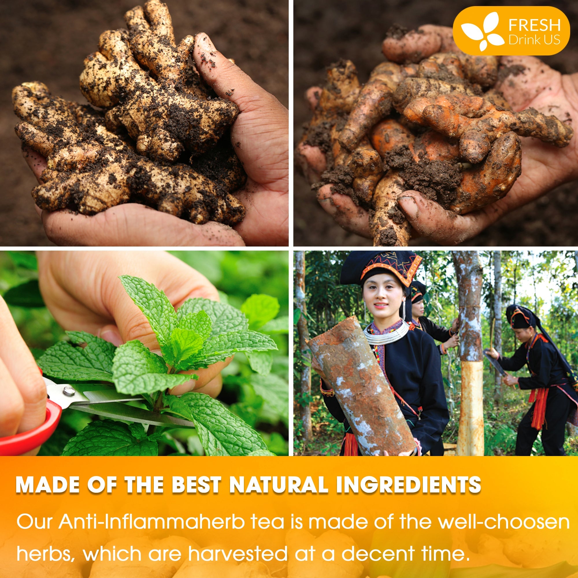 Anti-Inflammaheb Loose Leaf Tea, 100% Natural from Ginger, Turmeric, Peppermint, Black Pepper, Cinnamon
