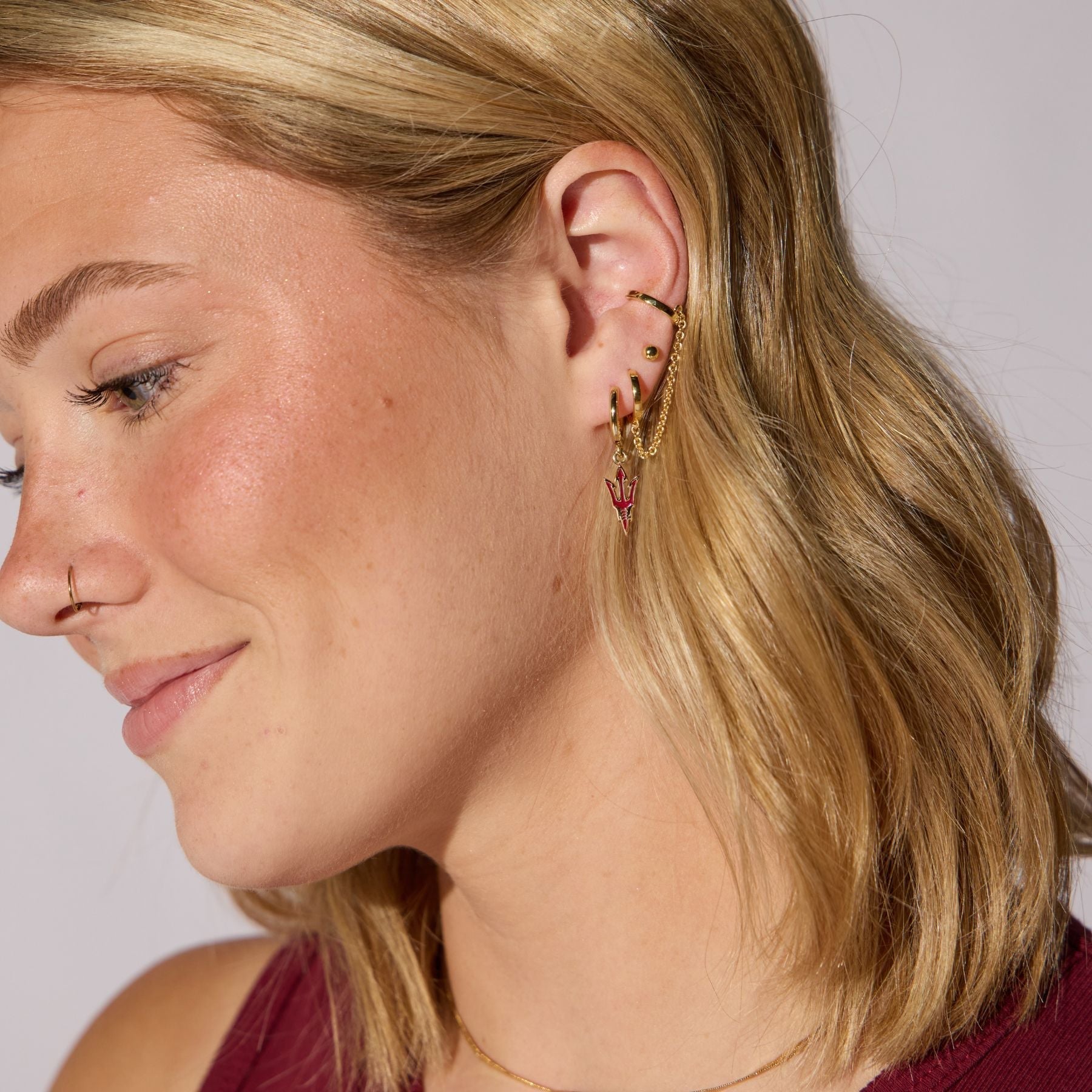 Gift it to your best friend, a proud alum, or keep it for yourself—this set is the ultimate blend of school pride and timeless style. This gameday-ready set includes three pairs of earrings, each crafted with gold hardware. Whether you're looking to make a bold statement or create a subtle, dainty ear stack, this versatile set has you covered.
