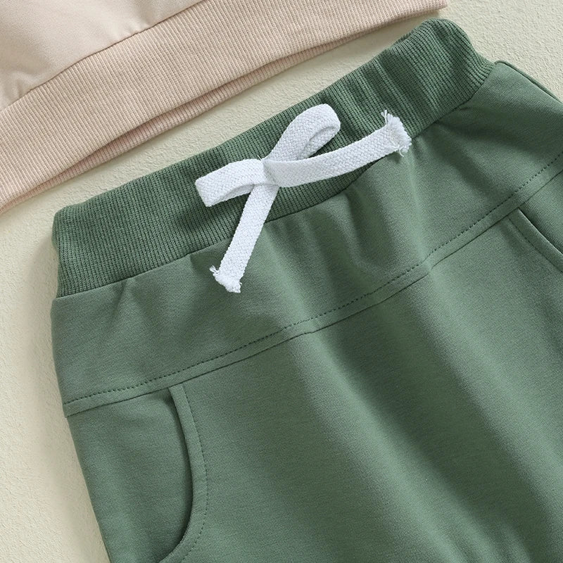 Baby Toddler Boys 2Pcs Big / Little Brother Matching Siblings Autumn Outfit Long Sleeve O Neck Letter Tractor Print Top Solid Color Pants Set