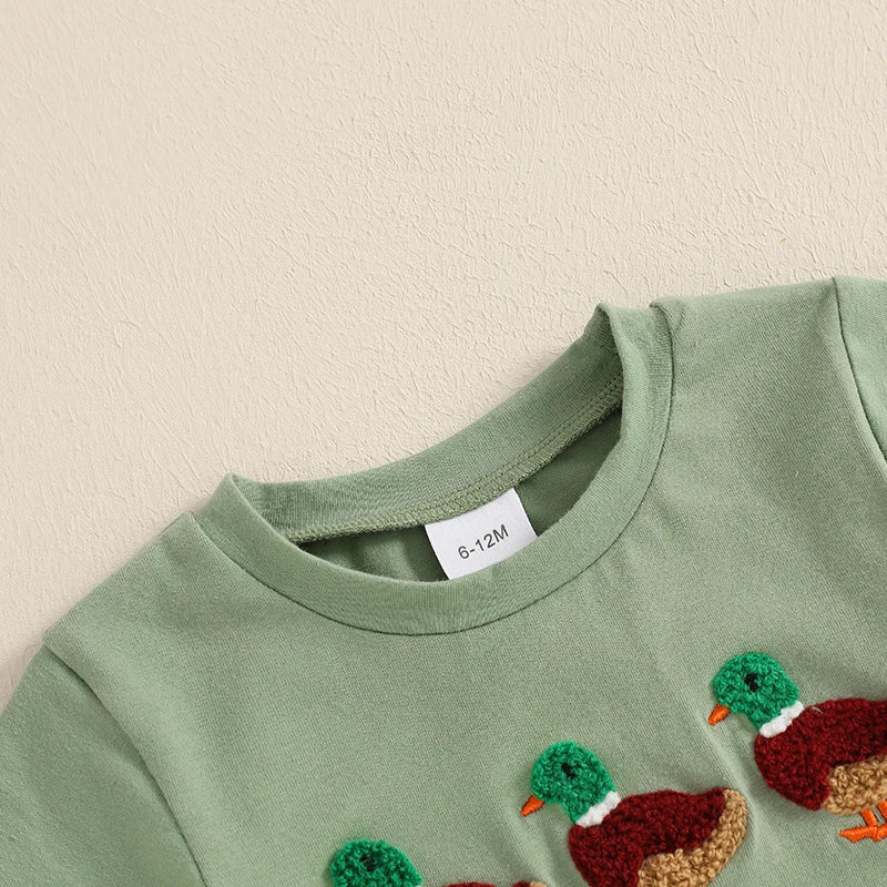 Baby Toddler Boys 2Pcs Outfit Summer Spring Duck Embroidery Short Sleeve T-Shirt Top and Elastic Waist Jogger Pants Set ‐ green / 6-12M / United States