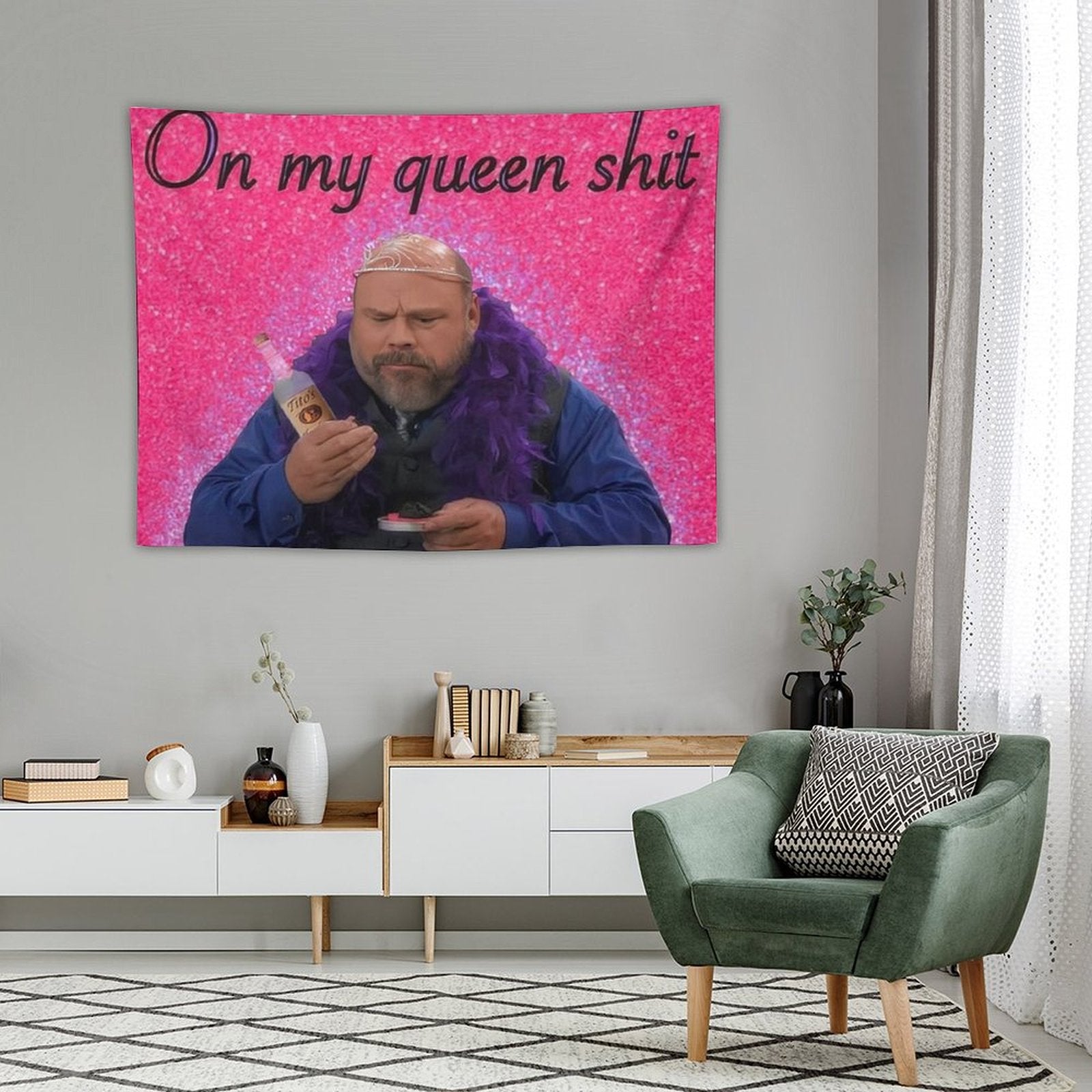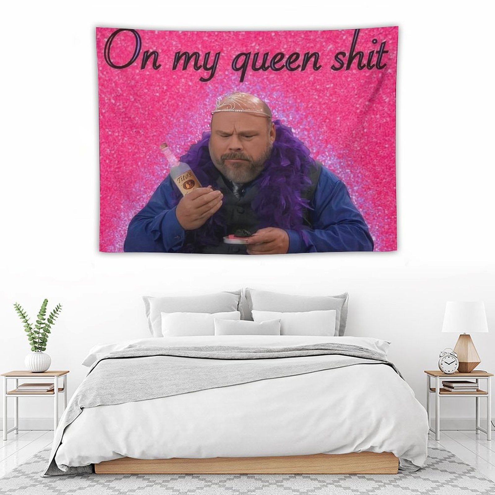💓【MULTI-FUNCTION】 Used "Bertram - On My Queen Shit Meme Funny Pink Tapestry" to decorate your bedroom, college dorm, room, living room, kitchen wall, can be used as tapestry or wall hanging, bedspread, tablecloth, dormitory decoration, beach shawl, tablecloth, etc.