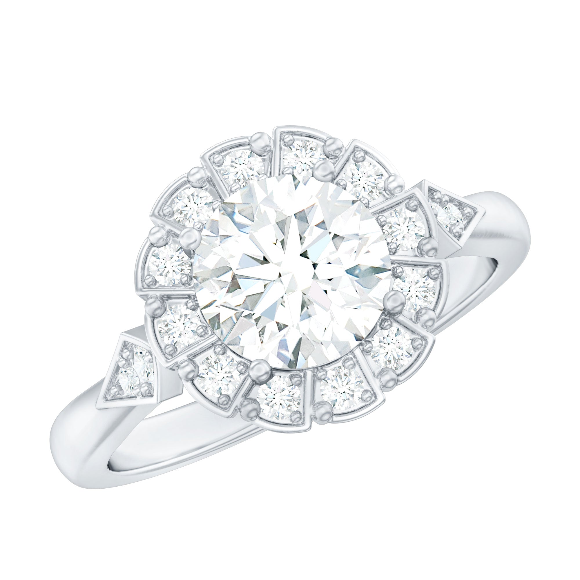 Certified 8 MM Lab Grown Diamond Flower Halo Engagement Ring ‐ Lab - ( EF-VS ) / 10K White Gold