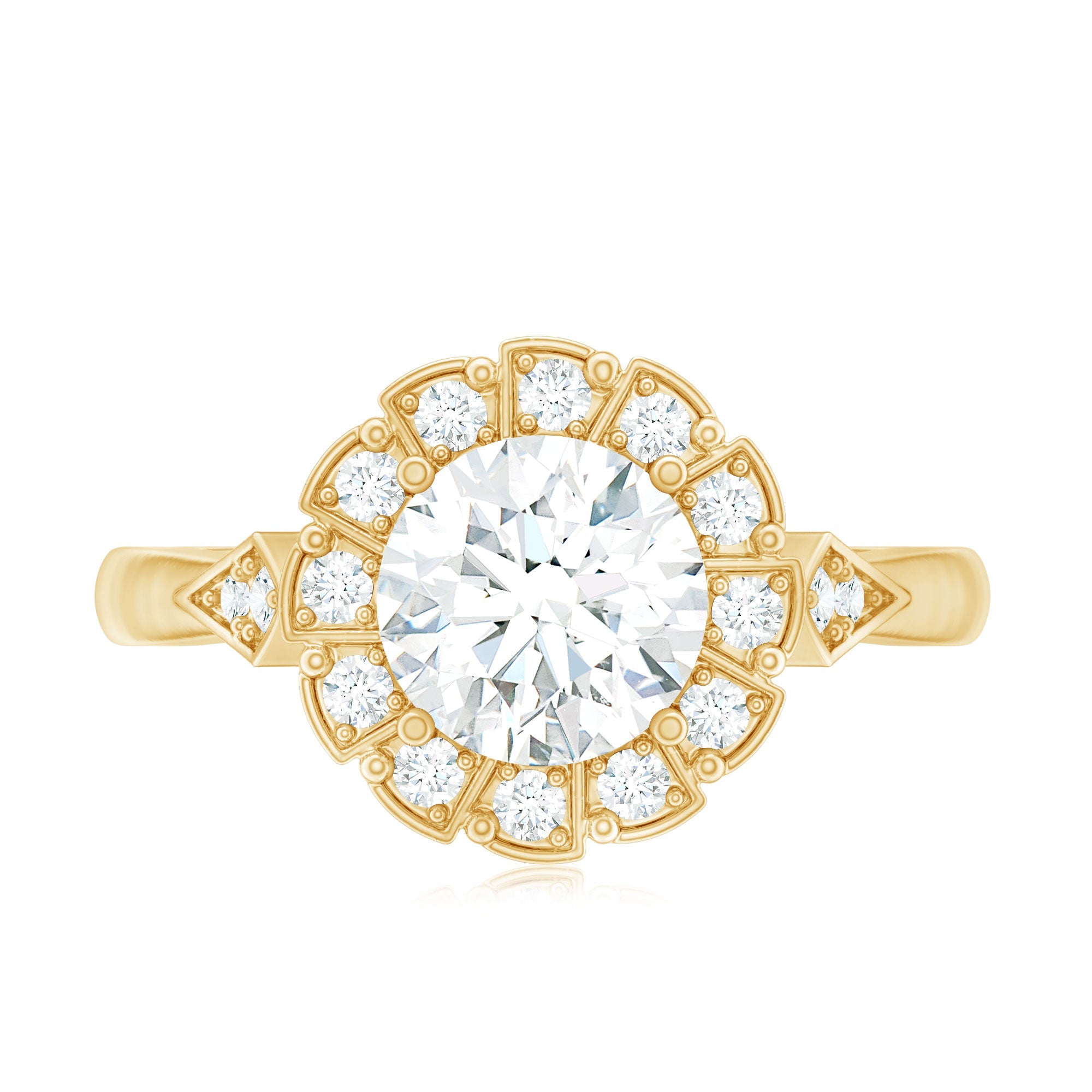 Certified 8 MM Lab Grown Diamond Flower Halo Engagement Ring ‐ Lab - ( EF-VS ) / 10K Yellow Gold