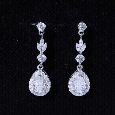 Certified CZ and Silver Teardrop Dangle Earrings for Wedding
