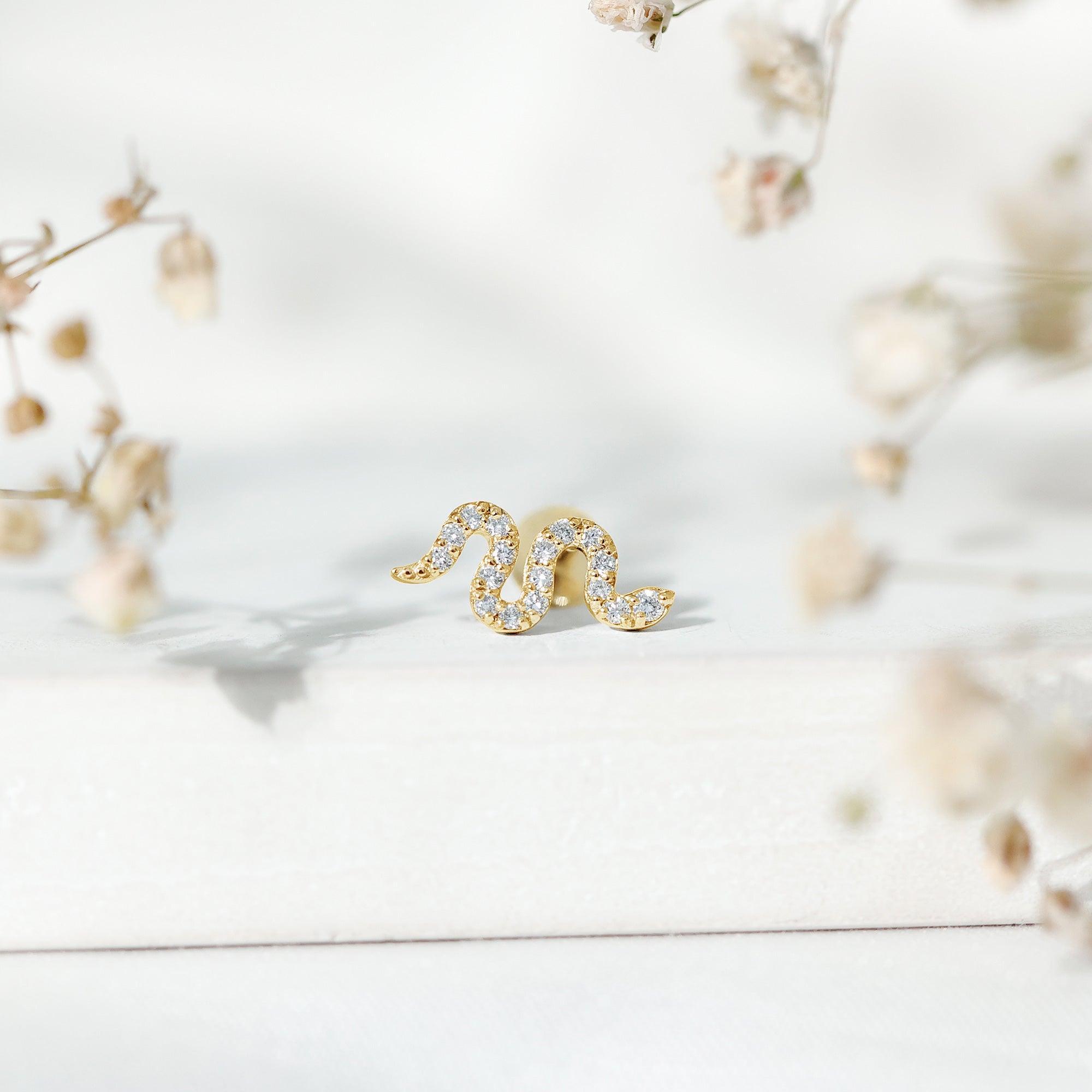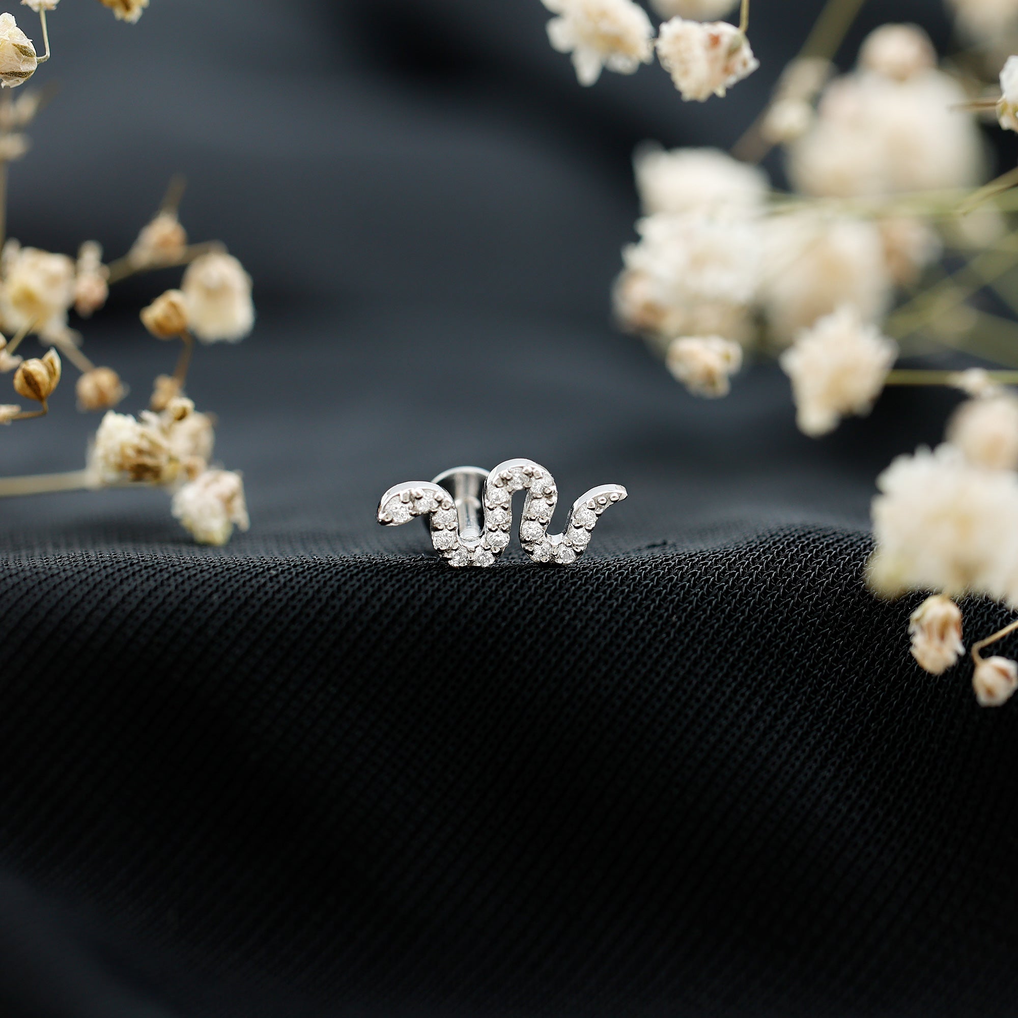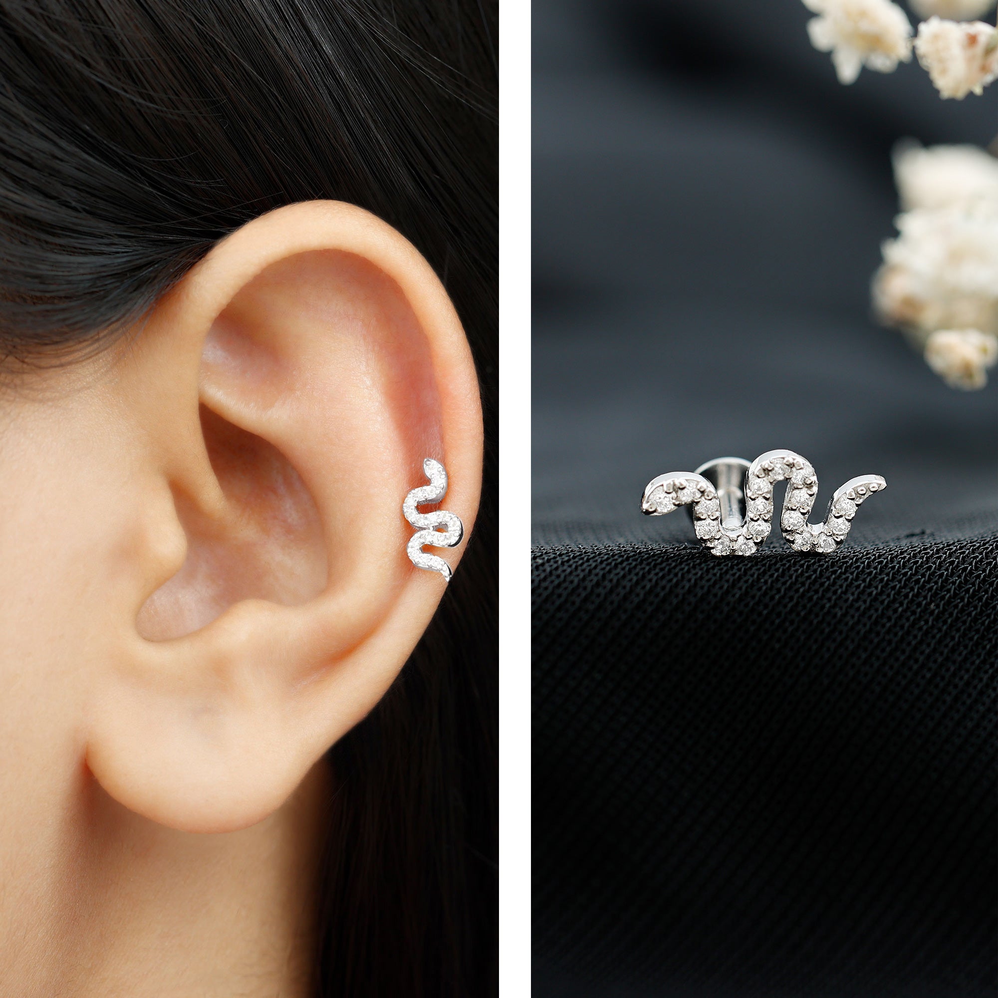 - Crafted with precision, this stunning piercing earring features captivating certified Diamonds studded on a snake motif in prong setting.