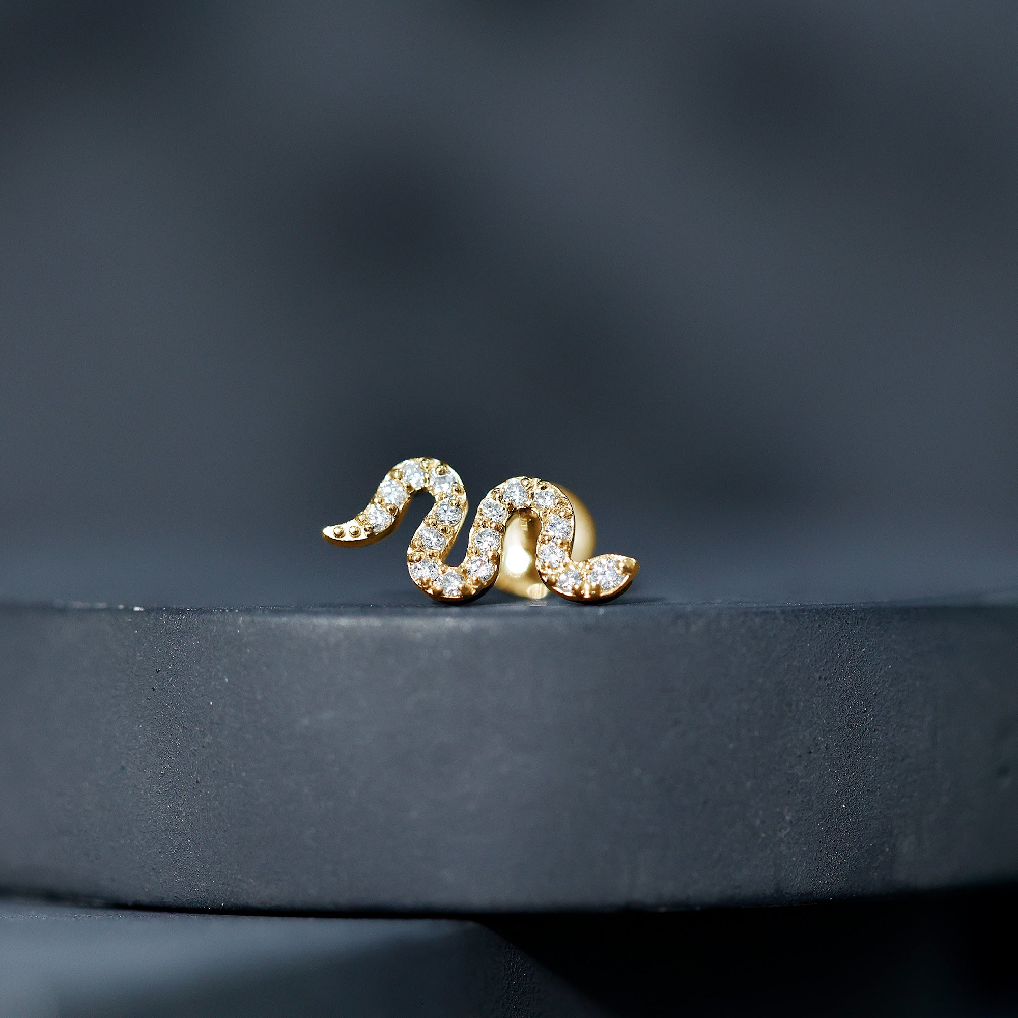Certified Diamond Snake Earring for Cartilage Piercing ‐ Lab - ( EF-VS ) / 14K Yellow Gold / Flat Back 5.0 MM