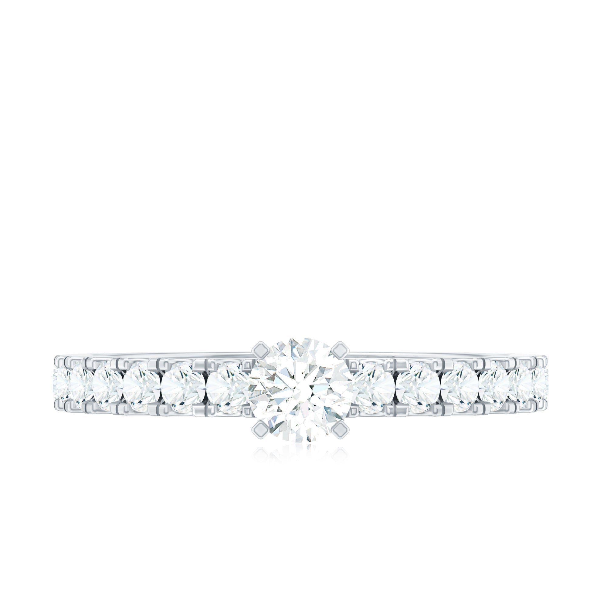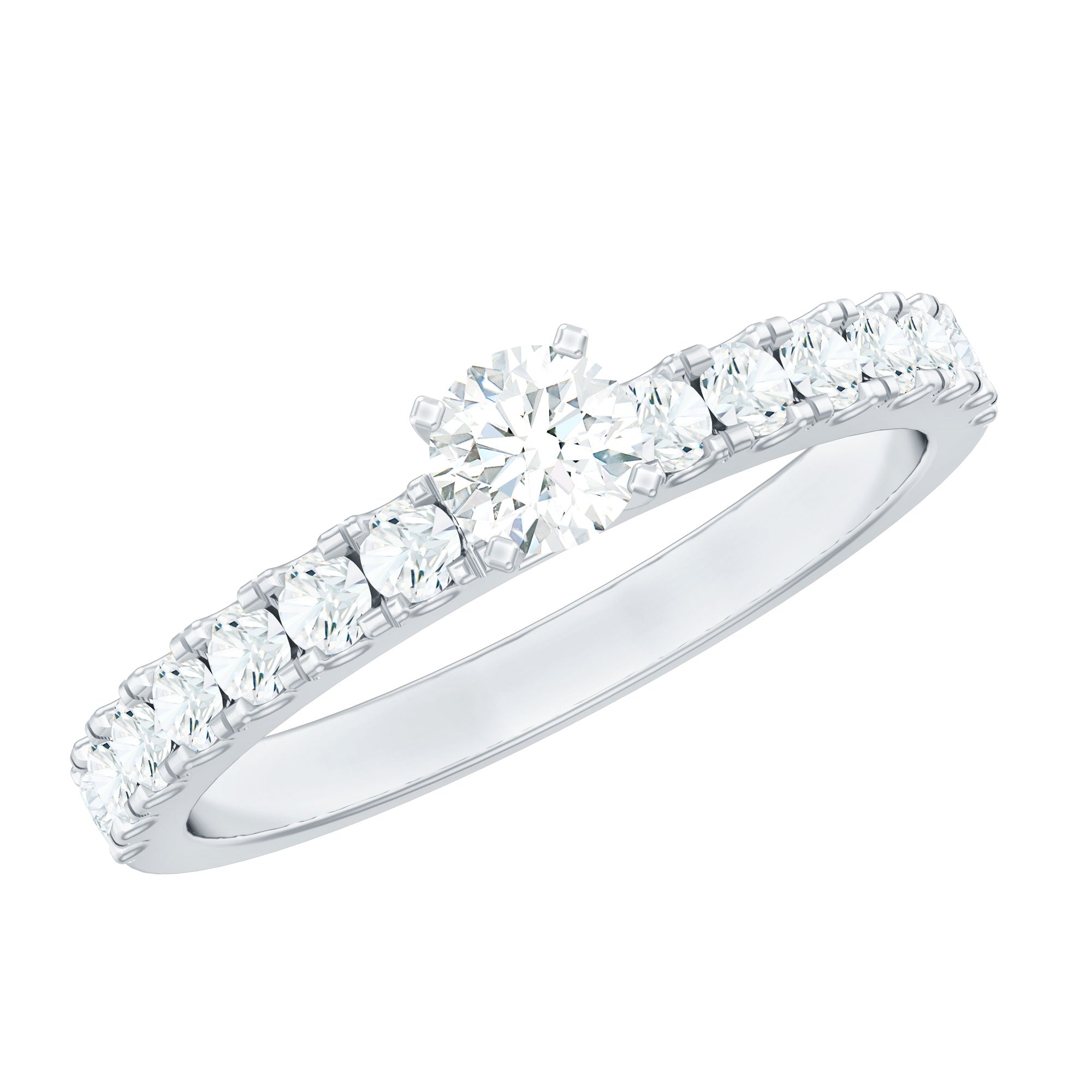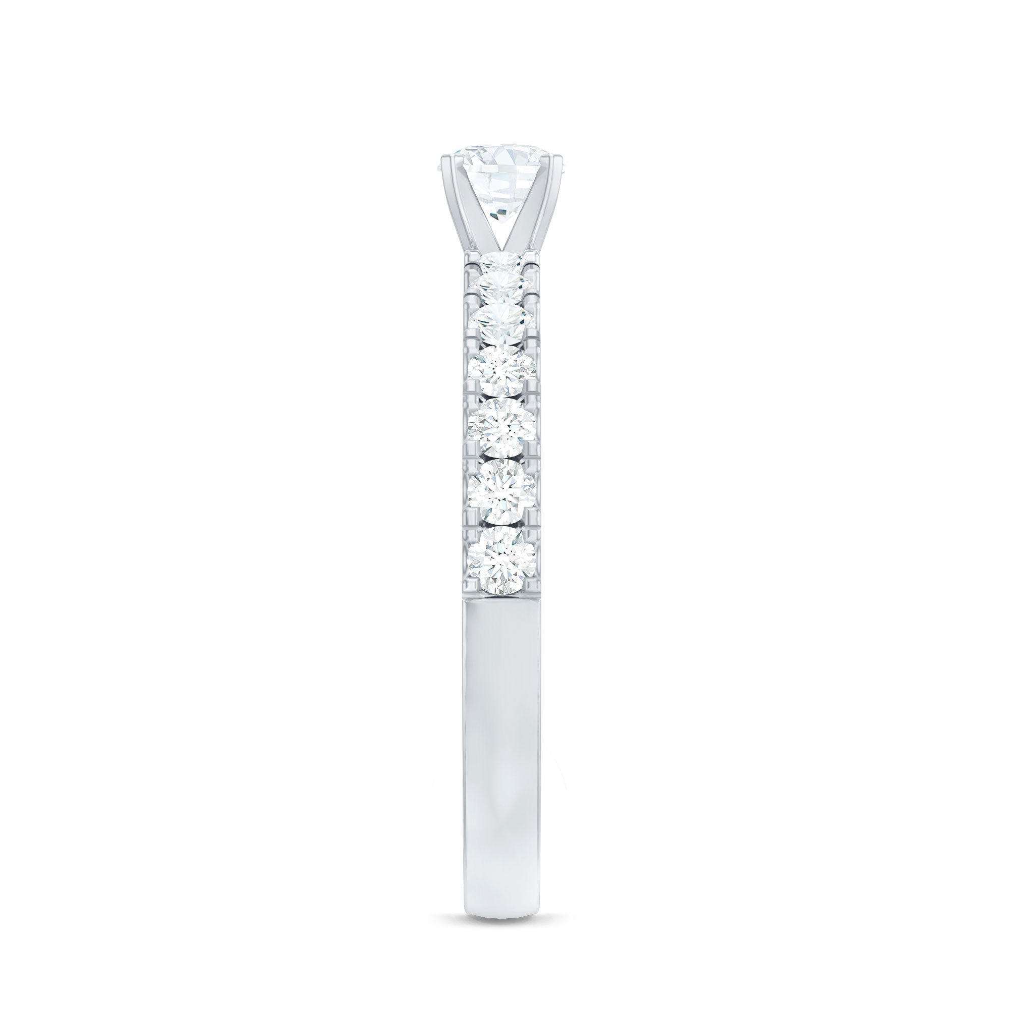 Certified Lab Grown Diamond Engagement Ring with Side Stones ‐ Lab - ( EF-VS ) / 18K White Gold