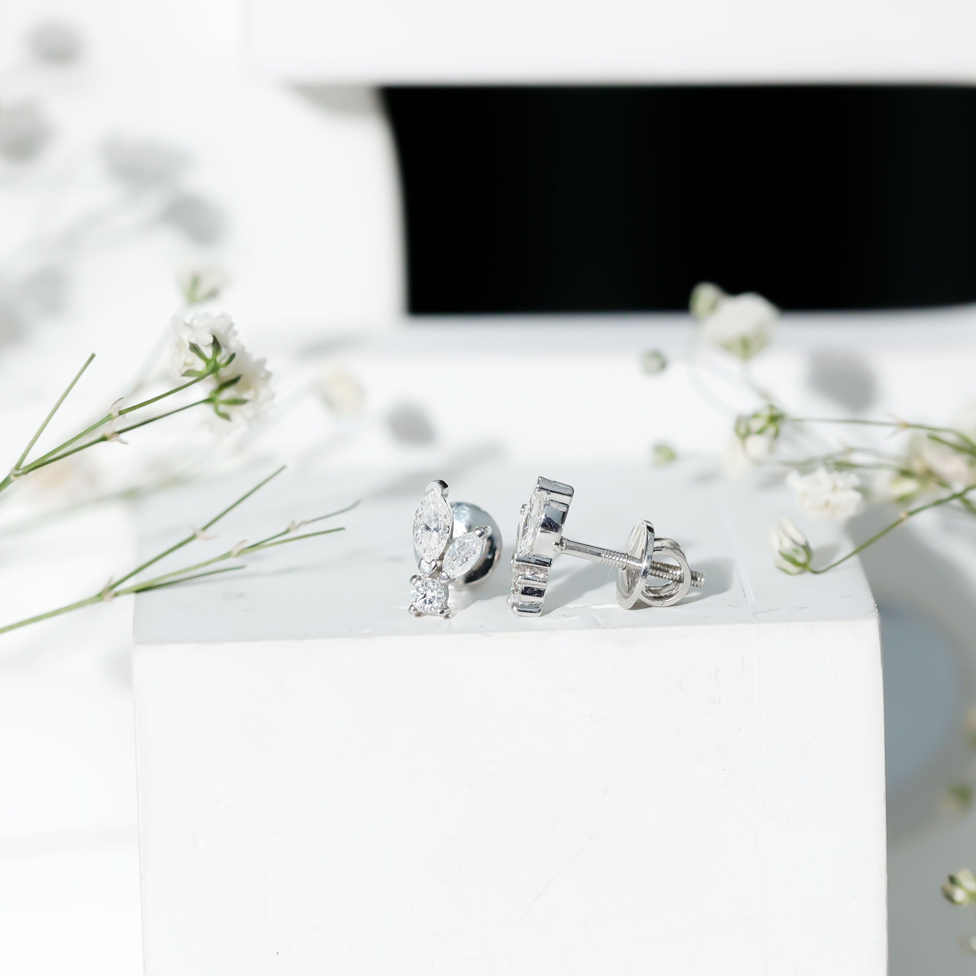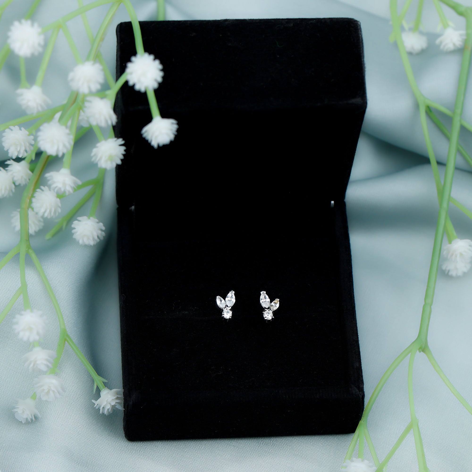 Cherish your playful side with these Moissanite Bunny Rabbit Earrings crafted with 14K White Gold Plated Silver. These studs feature a cute bunny ear design crafted with Marquise and Round Shape Moissanite Stones securely placed in Prong Setting. The earring beholds the classic shine of D-VS1 Quality Moissanite which perfectly reflects your playful and bubbly nature. These Moissanite Stud Earrings can be presented as a birthday present to your special lady or best friend. These Cute Earrings with Screw on Backs will stay in place throughout the day and will be shipped to you in premium quality packaging along with the certificate of authenticity.