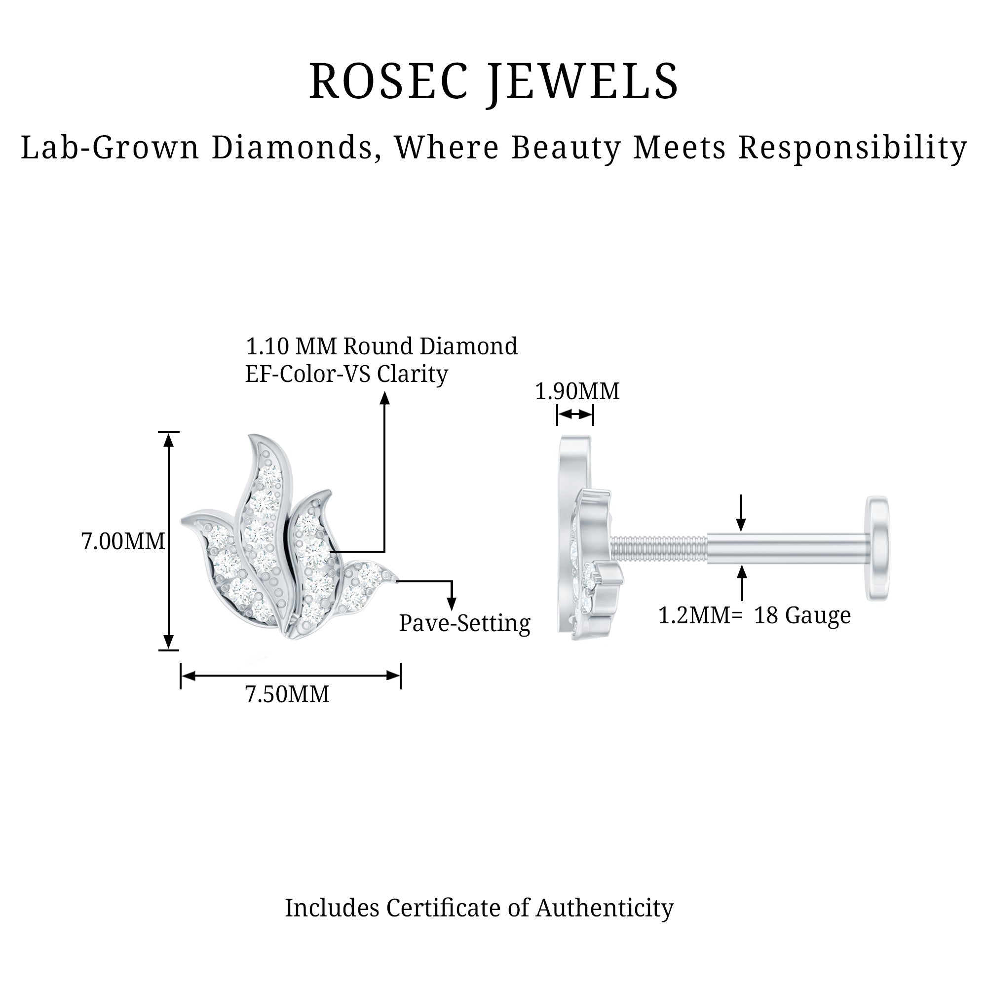 Diamond Leaf Helix Earring for Women ‐ Lab - ( EF-VS ) / 14K White Gold / Flat Back 4.5 MM