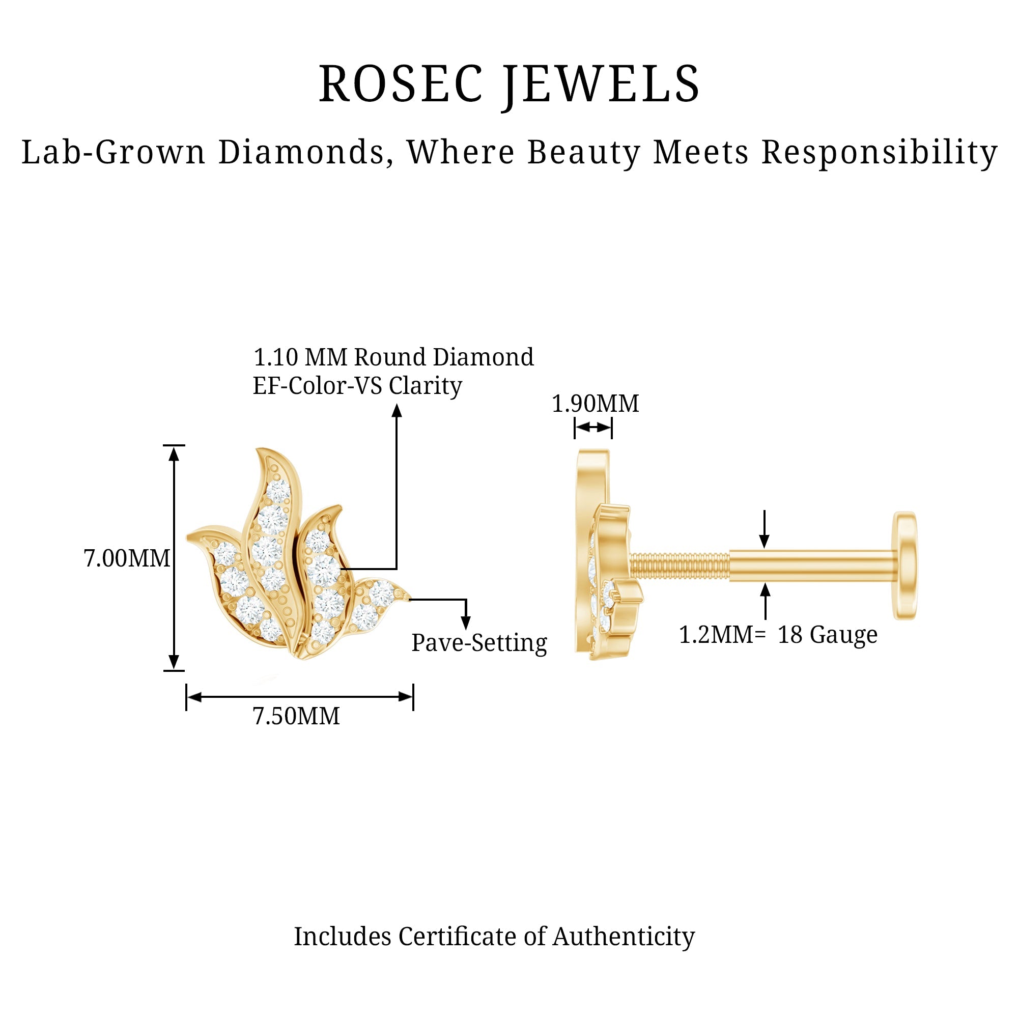 Diamond Leaf Helix Earring for Women ‐ Lab - ( EF-VS ) / 18K Yellow Gold / Flat Back 7.5 MM