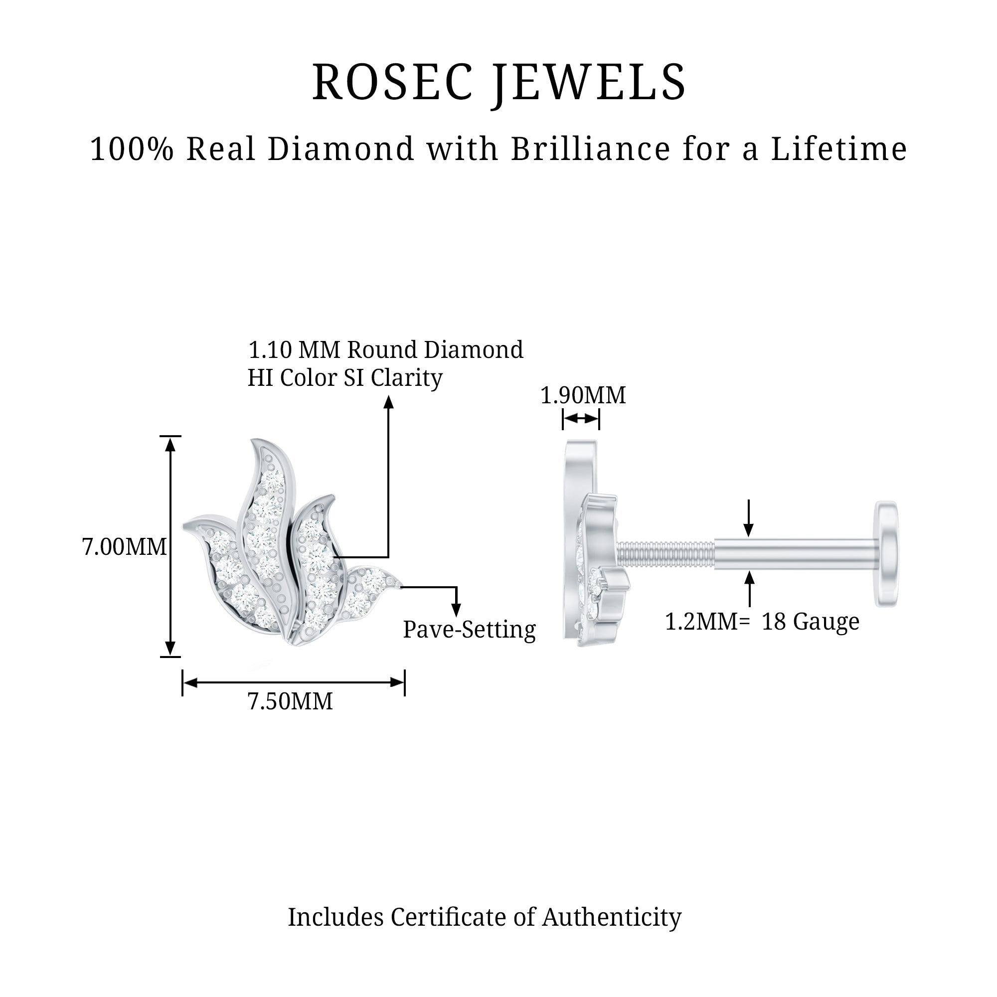 Diamond Leaf Helix Earring for Women ‐ Natural - ( HI-SI ) / 14K White Gold / Flat Back 5.5 MM