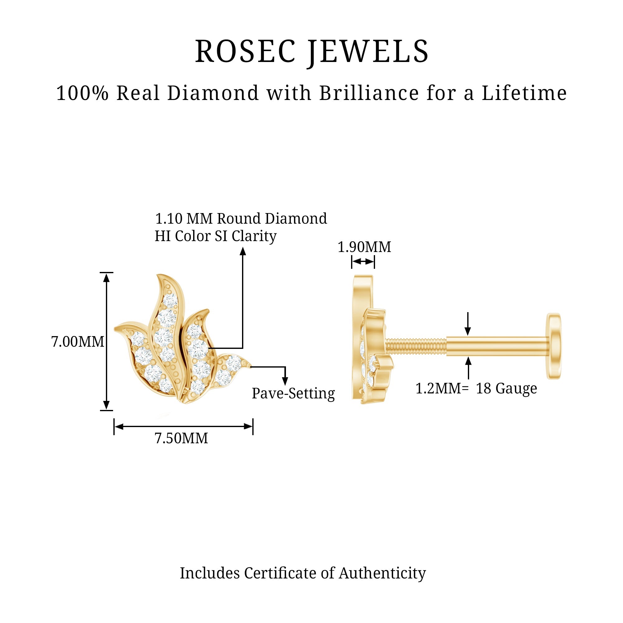 Let your beauty bloom with the stunning Diamond Leaf Earring! Elevate your look with this Nature-Inspired dazzler, adorned with Round Diamonds in a Prong Setting on a Leaf Branch Design. Style this radiant Diamond Earring on your Helix, Cartilage, or Upper Lobe Piercing, featuring a Flat Back Closure for that snug and secure fit. Because why settle for ordinary when your partner deserves extraordinary? Gift your leading lady a symbol of affection with our breathtaking Diamond Leaf Earring. Its time to let her shine!