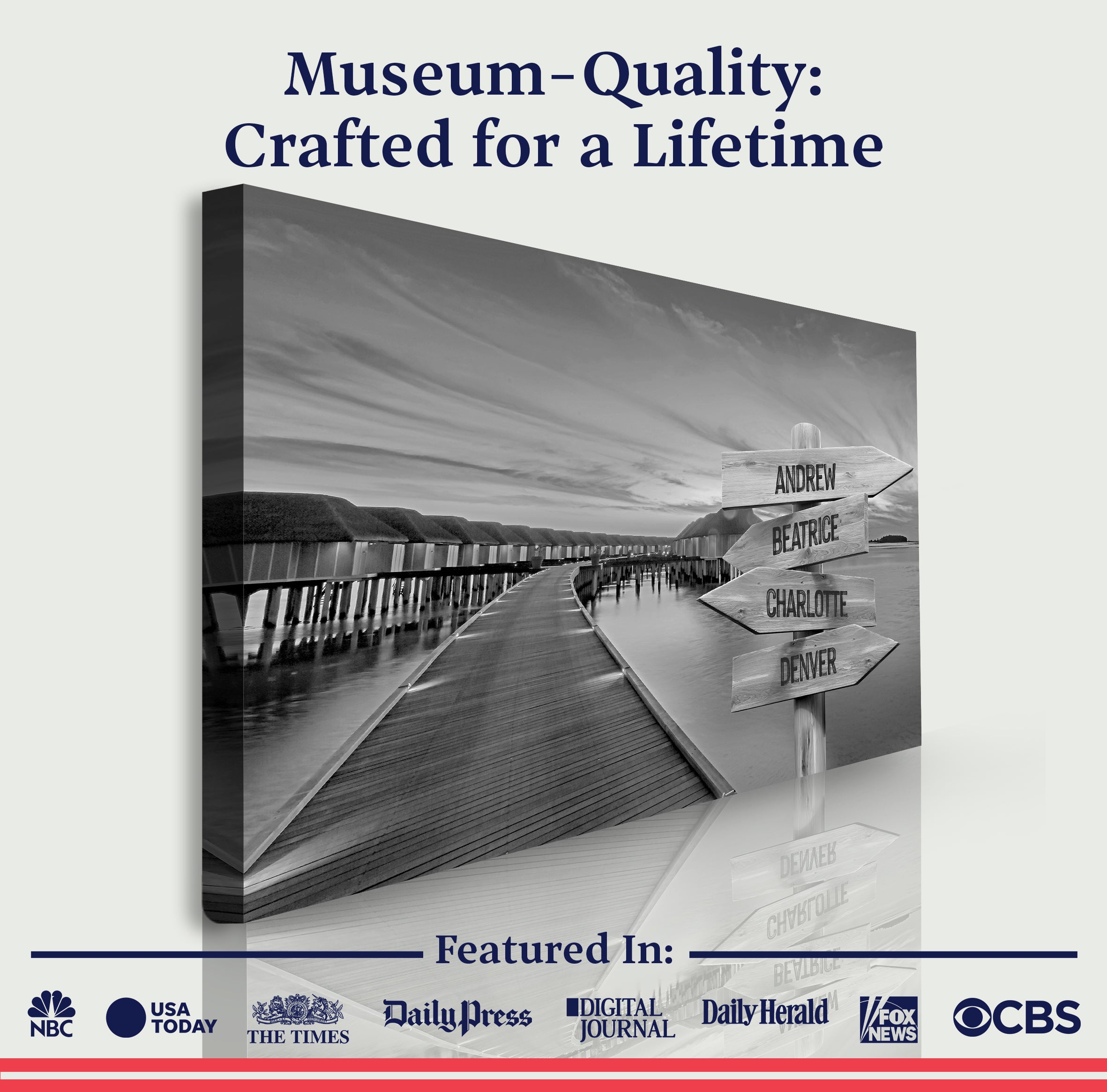 Family Names Monochrome Ocean Dock Sign ‐ 18x12 inch Medium Premium Gallery Wrapped
